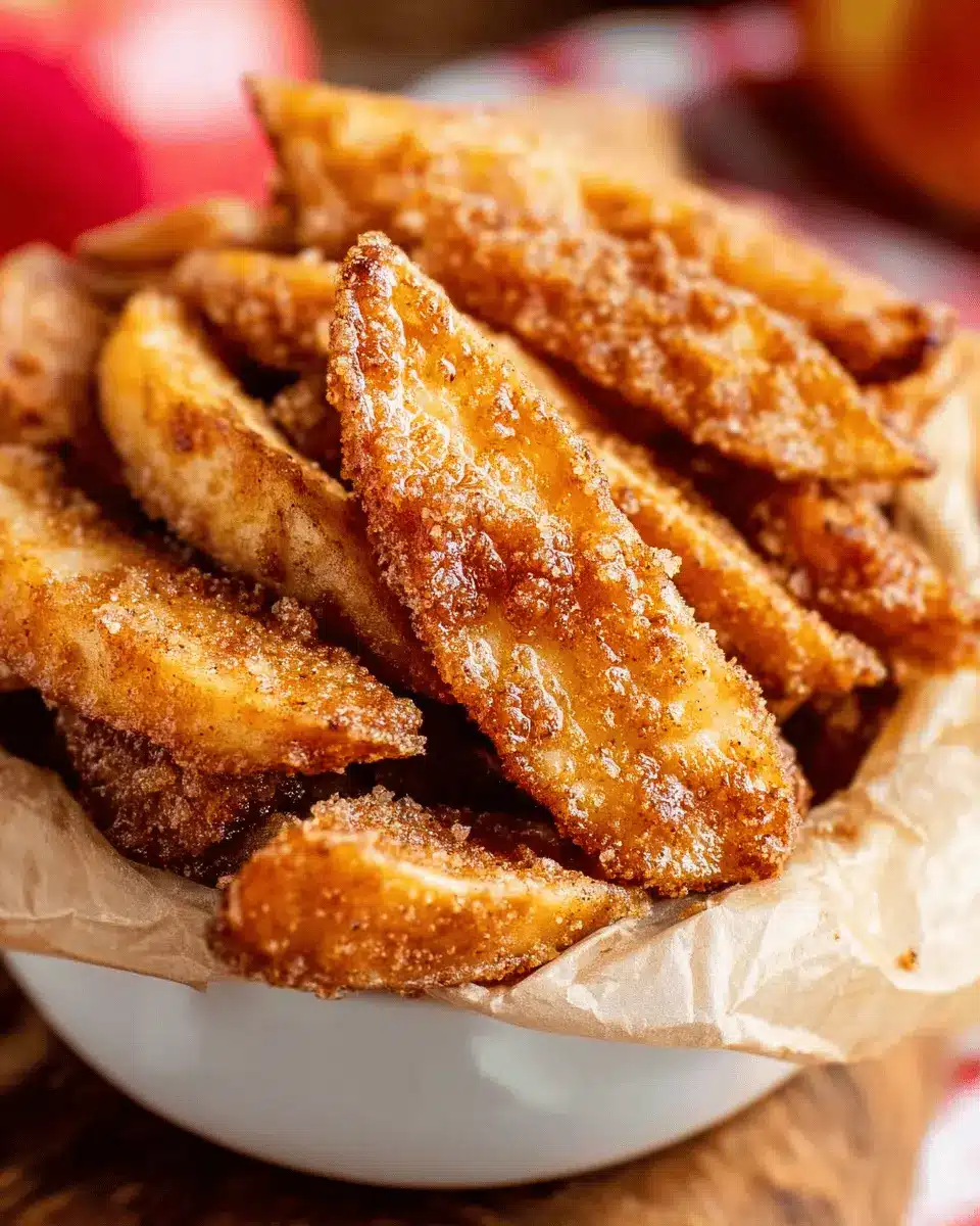 In a medium bowl, whisk together the all-purpose flour, apple pie spice, and 4 tablespoons of cinnamon. This combination not only adds flavor but also creates a delightful coating that elevates your air fryer apple fries. If you’re looking for a bit more crunch, consider adding some panko breadcrumbs to the mix. For further inspiration on spice blends, check out this spice guide that explores creative combinations.