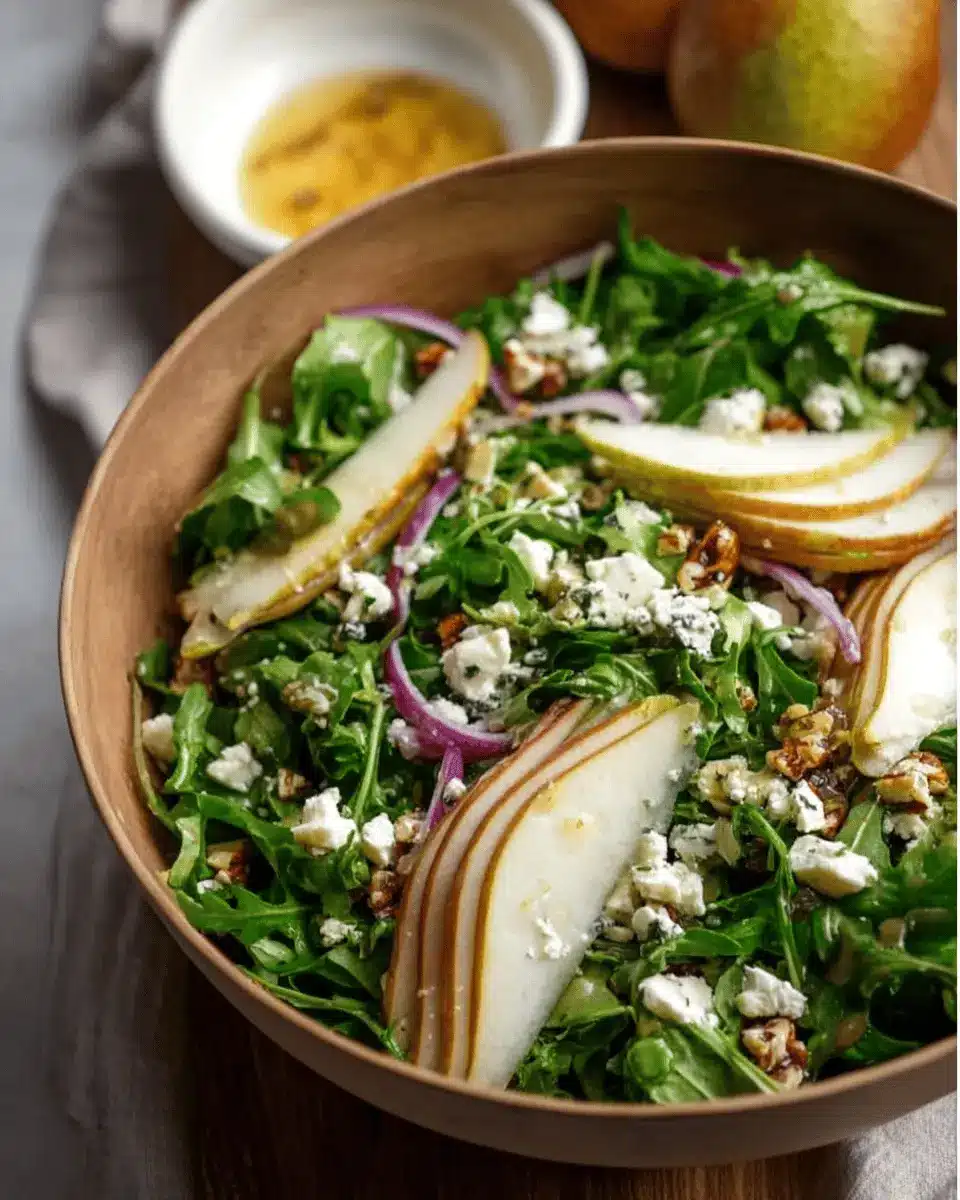 The arugula salad with pears and goat cheese is a delightful blend of flavors and textures, perfect for any occasion. Its vibrant ingredients not only appeal to the eye but also nourish your body. Enjoy this salad as a fresh appetizer or a light meal, and savor every bite!