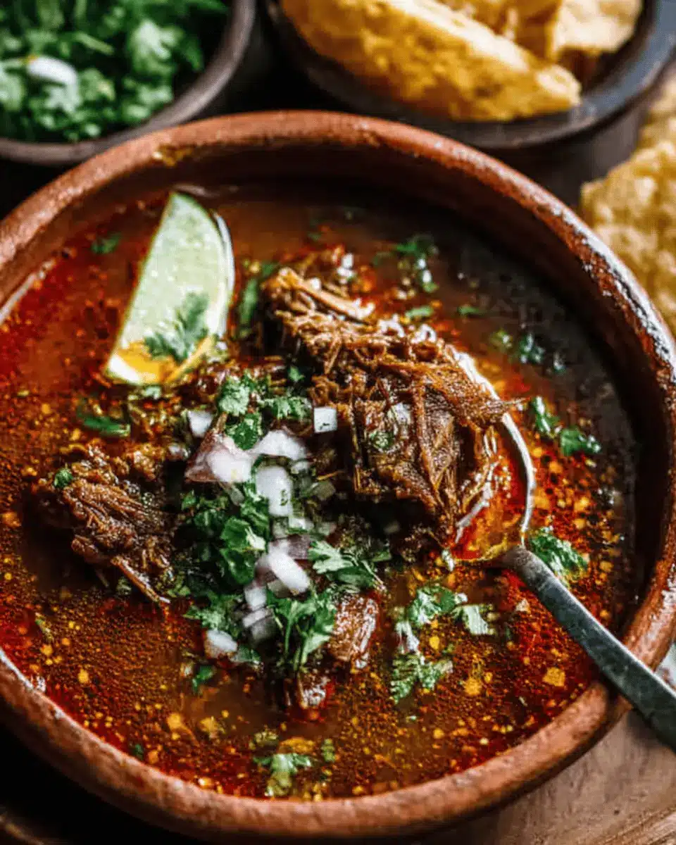 When enjoying authentic birria, traditional accompaniments can elevate the experience. Serve it in deep bowls, garnished with finely chopped onions and fresh cilantro. A squeeze of lime really enhances the flavors! For some extra warmth, consider adding a side of corn tortillas or crispy tortilla chips, perfect for dipping into the rich consomé. A homemade salsa verde or roasted tomato salsa offers a zesty kick and complements the dish beautifully.