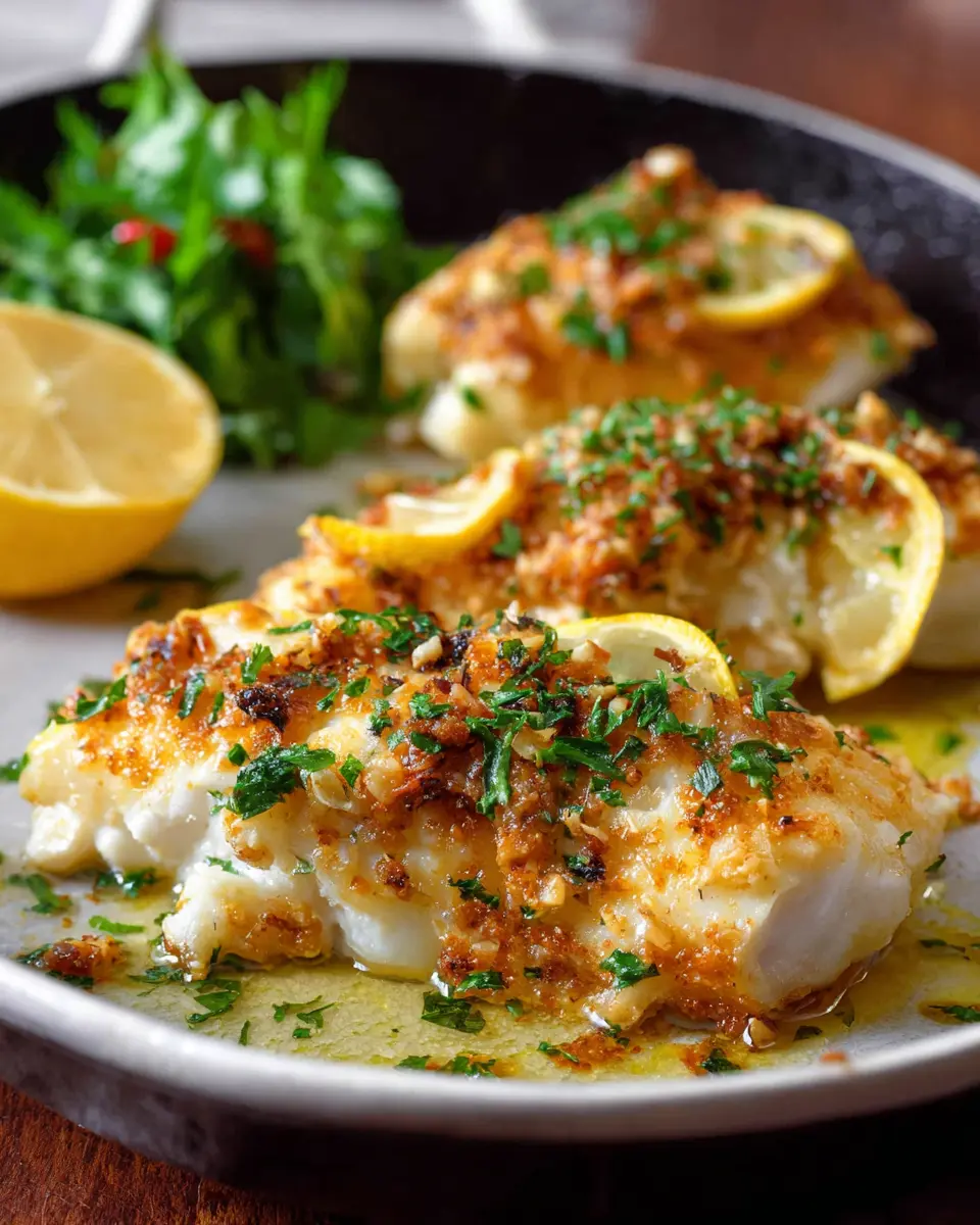 Once it’s out of the oven, sprinkle with fresh parsley and serve. Your Baked Cod Recipe with Lemon and Garlic is ready to impress! Paired with a fresh salad or aromatic rice, it makes for an exquisite meal any day of the week. Enjoy!
