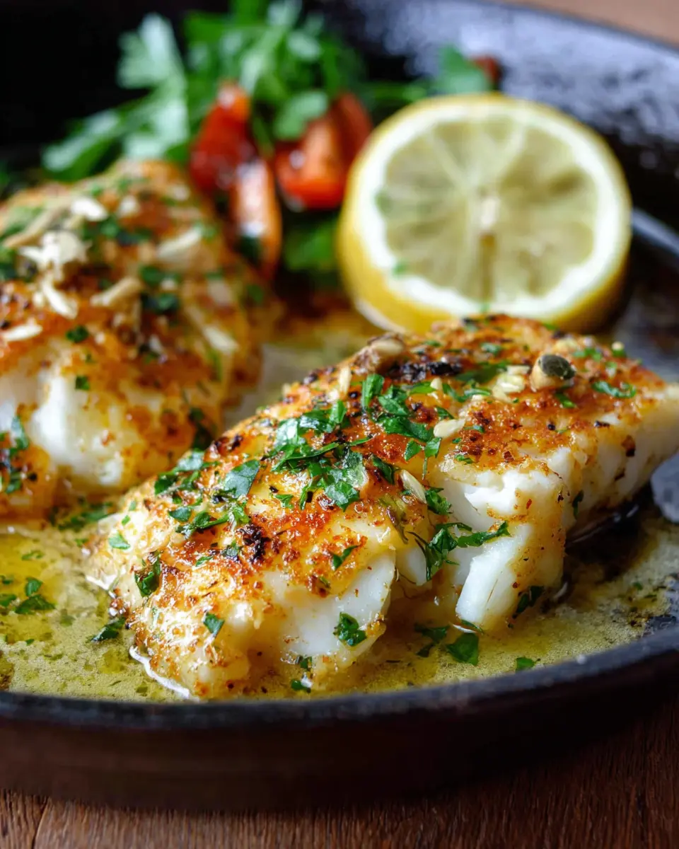 Before baking, add the minced garlic to the reserved lemon sauce and drizzle it over the seared fillets. Then, pop the skillet into your preheated oven (400°F) and bake for around 10 minutes, or until the cod flakes easily with a fork. This is your moment to check for doneness; be cautious not to overbake, as nobody wants dry fish!