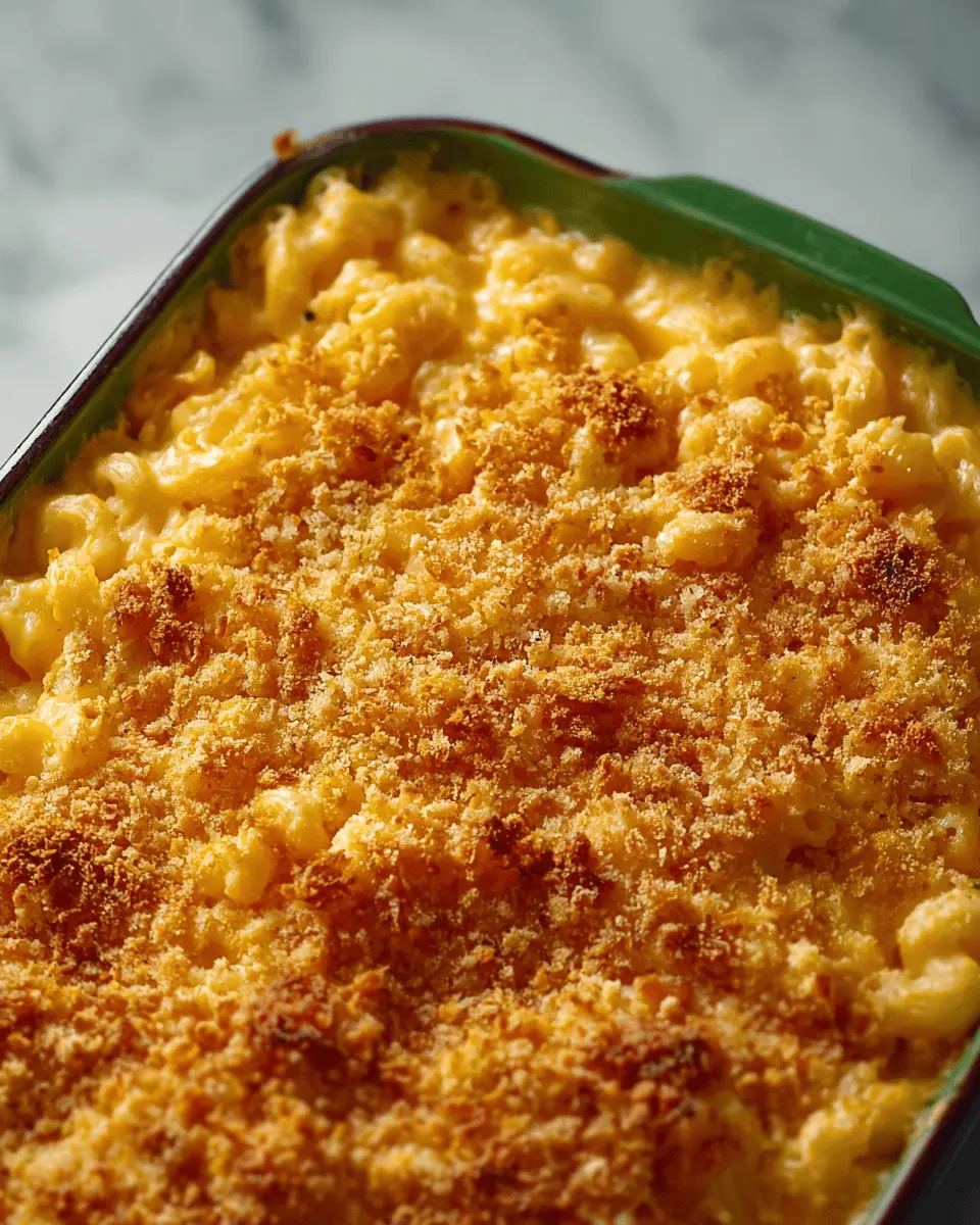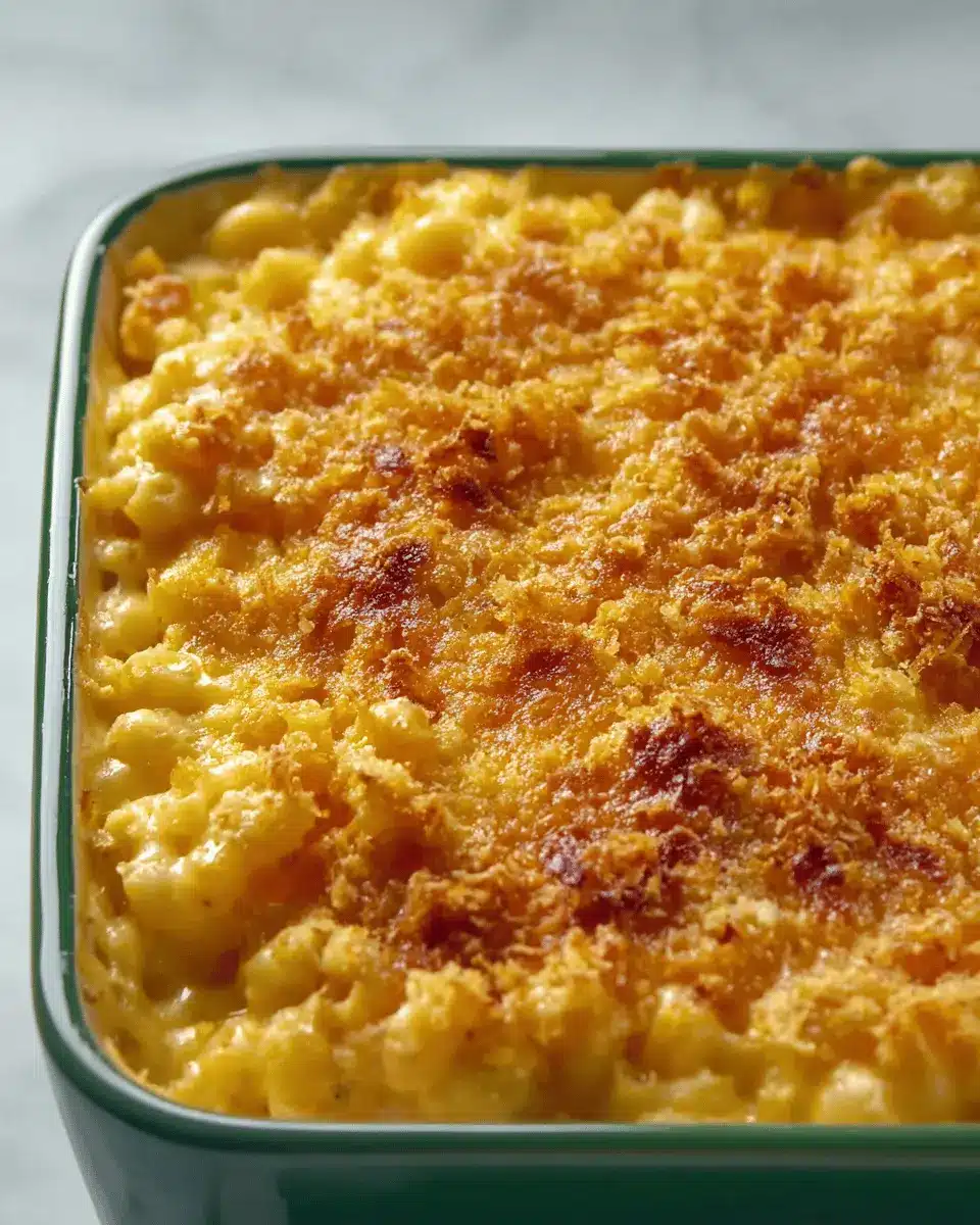 To add that delightful crunch, mix the remaining ¼ cup of melted butter with the crushed buttery round crackers in a bowl. This topping not only adds texture but also enhances flavor. Sprinkle this mixture evenly over the macaroni and cheese in your baking dish, creating a perfect golden crust when baked.
