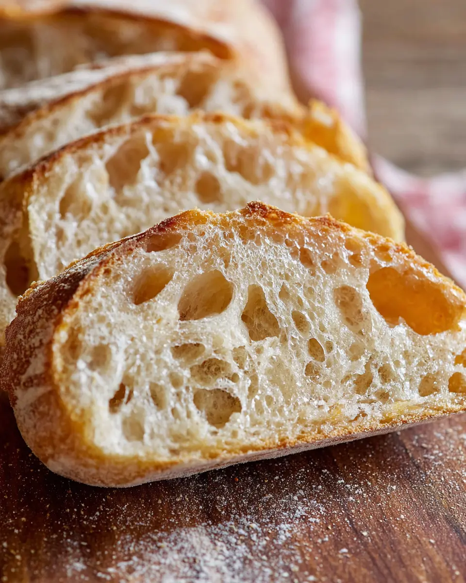 To keep your Bakery-Style Ciabatta fresh, store it at room temperature in a paper bag or wrapped loosely in a clean kitchen towel. Avoid plastic, as it traps moisture and can make the crust soggy. If you expect to have leftovers, it’s best to use them within a few days.