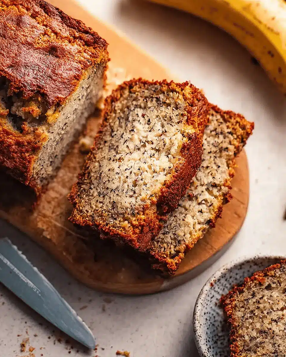 Knowing when your banana bread is perfectly baked is easy! Start checking around the 55-minute mark. Insert a toothpick into the center of the loaf; if it comes out clean or with just a few dry crumbs, you’re good to go. If you see wet batter, give it a little more time. If the outside looks brown but the center isn’t set, gently tent the loaf with foil to avoid burning while it finishes baking.