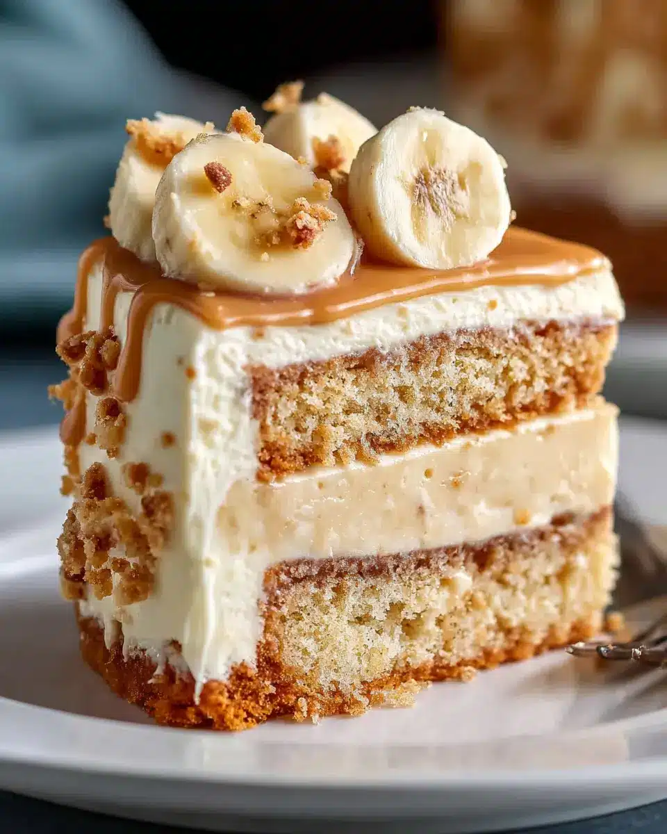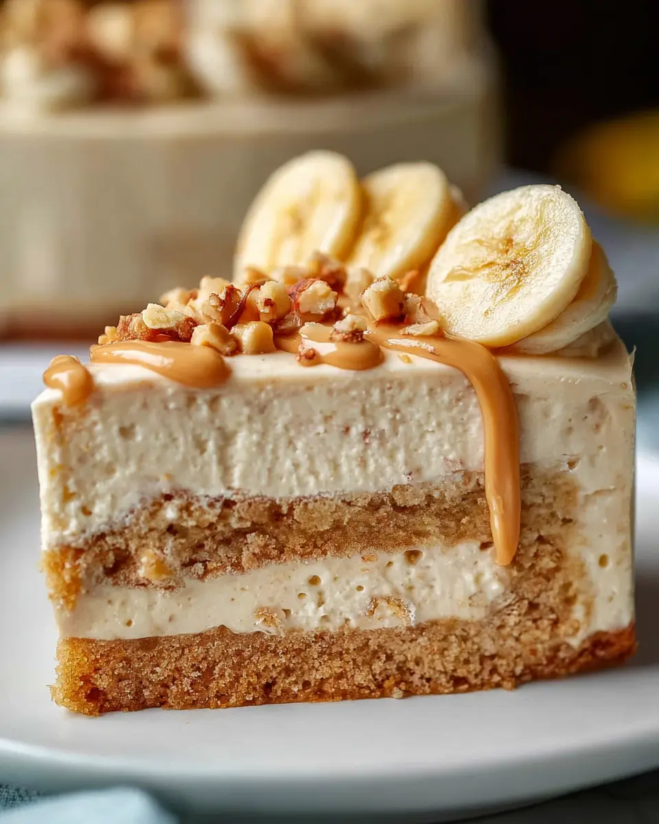 Once chilled, slice and serve your banana pudding cookie butter cheesecake cake, garnishing with extra banana slices or whipped cream for that extra touch. Enjoy the delightful blend of flavors and textures that make this dessert an ultimate crowd-pleaser!