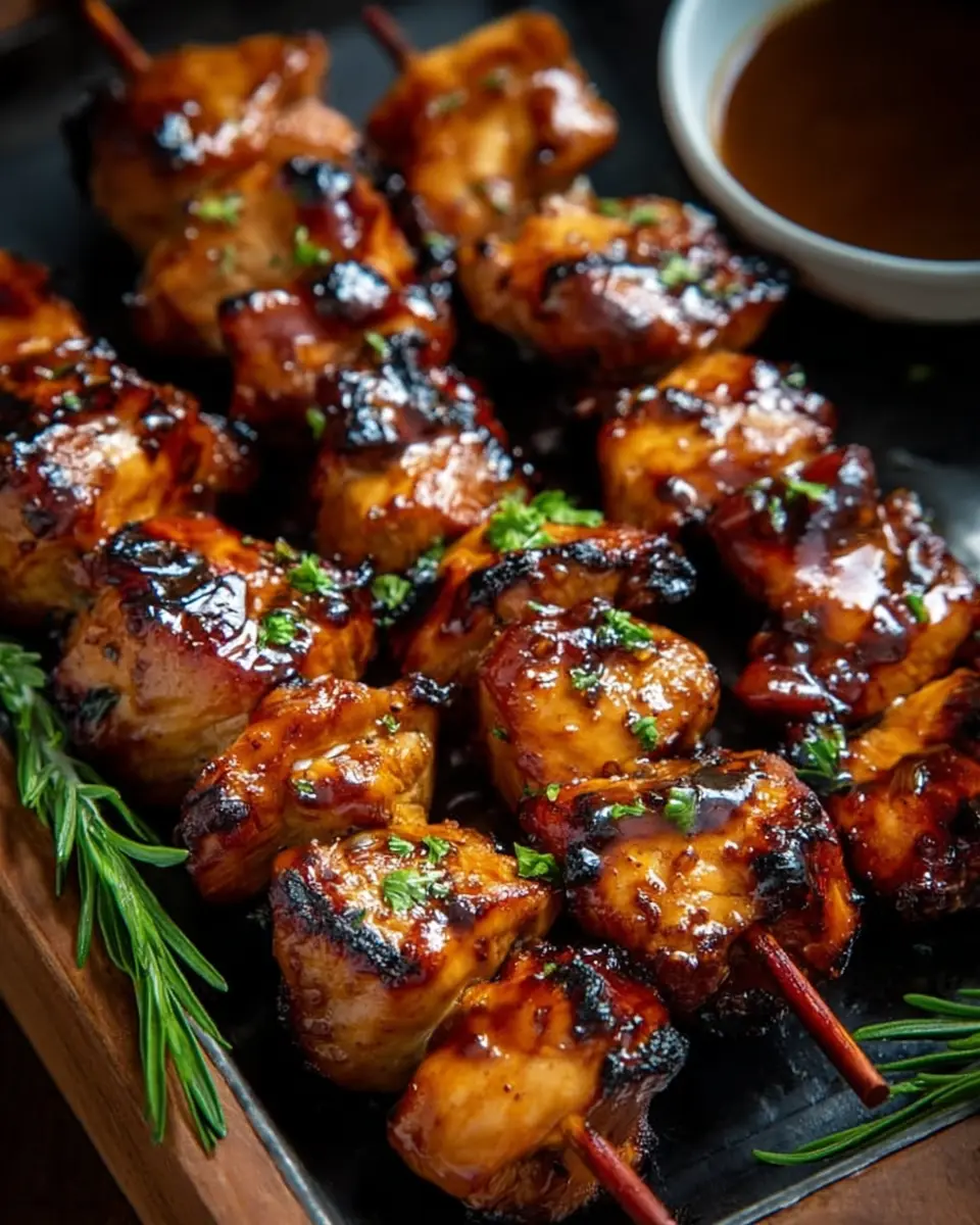 Elevate your Bourbon Chicken Skewers by serving them with a side of fragrant jasmine rice or crispy vegetable stir-fry. A refreshing cucumber salad or grilled corn on the cob pairs beautifully, adding a crunchy contrast. You might even consider a tangy dipping sauce, like a zesty lemon garlic aioli, to complement the smoky flavors.