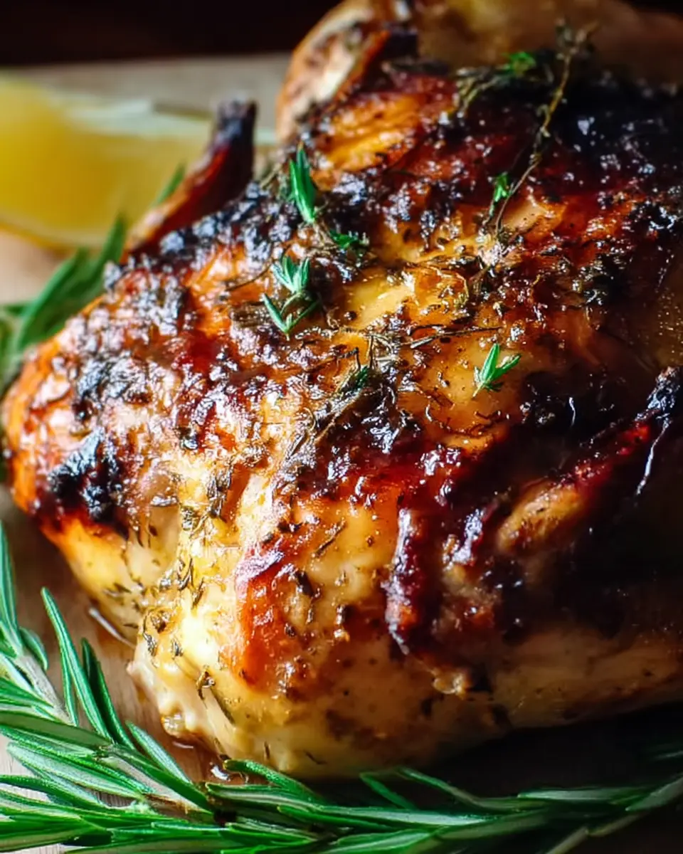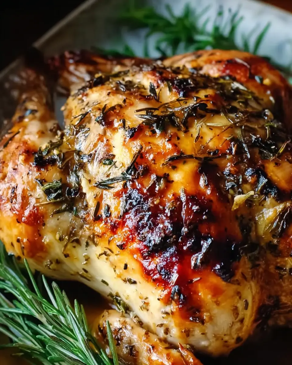 - Carve and Serve: Carve the chicken into pieces and arrange them on a platter. Garnish with fresh herbs if desired.