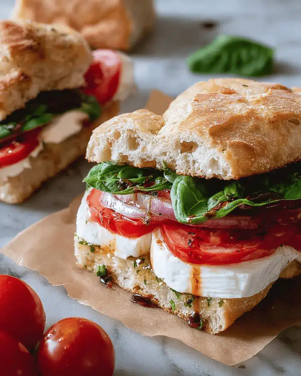 And there you have it! Your Caprese Sandwich is ready to be devoured. Trust me, it’s a simple yet delicious option for lunch or a light dinner. Enjoy the burst of flavors with every bite, and feel free to share this recipe with friends for a delightful summer treat!