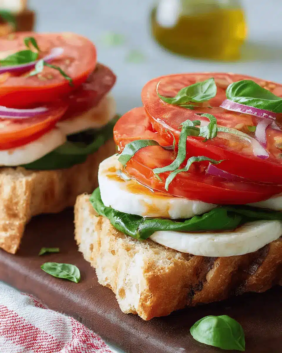For those who enjoy a bit more savory crunch, adding Turkey Bacon can elevate your Caprese Sandwich experience. The smoky flavor of crispy turkey bacon pairs incredibly well with the fresh tomatoes and mozzarella. Simply cook the turkey bacon until crispy, then layer it in with the arugula and basil. This variation adds a satisfying element that’s perfect for a post-work meal or a weekend lunch.