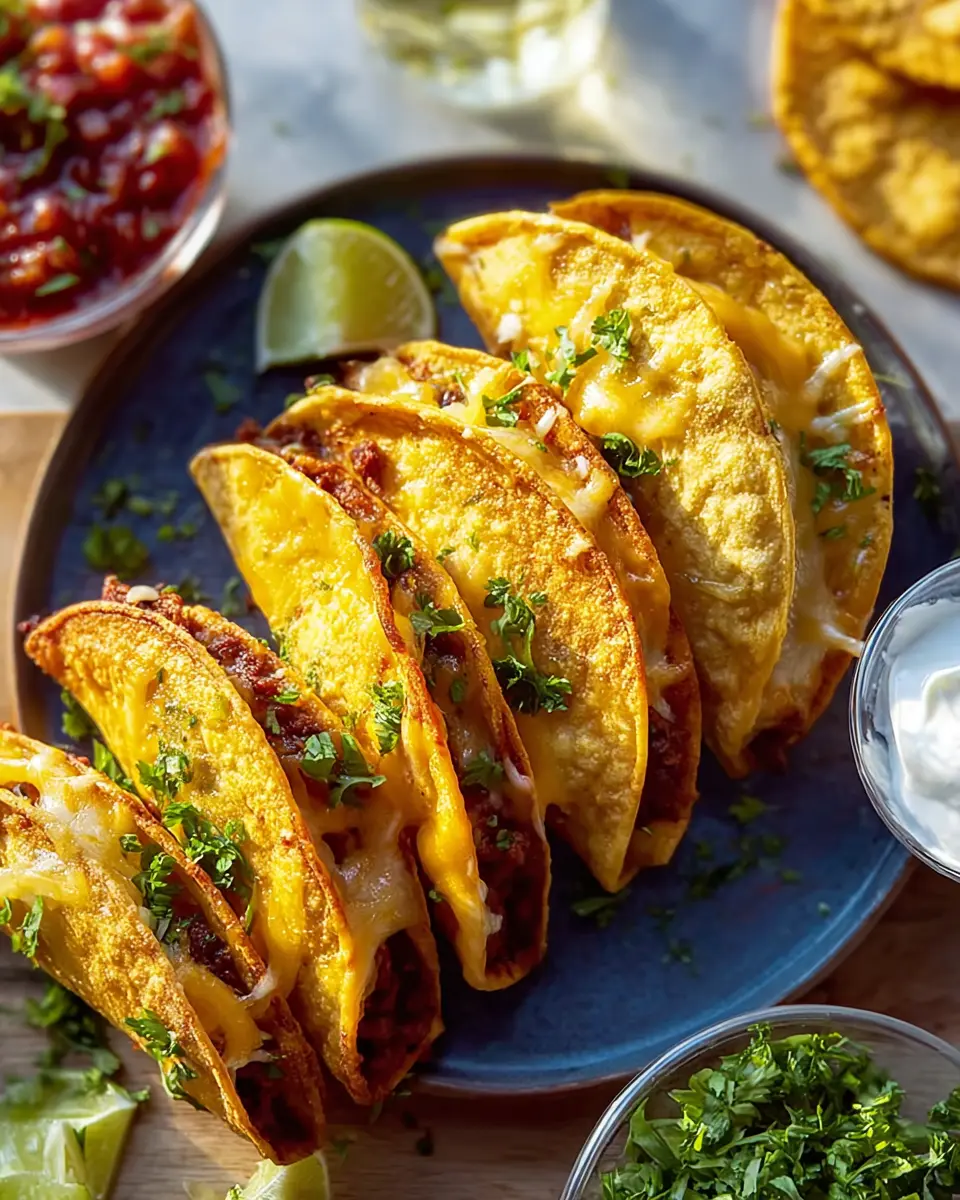 Absolutely! You can prepare the cheesy baked tacos ahead of time. Simply assemble the tacos and keep them covered in the refrigerator for up to 24 hours. When you’re ready to enjoy them, pop them in the oven for a quick reheat at 350°F until warm and crispy—around 10 minutes should do the trick.