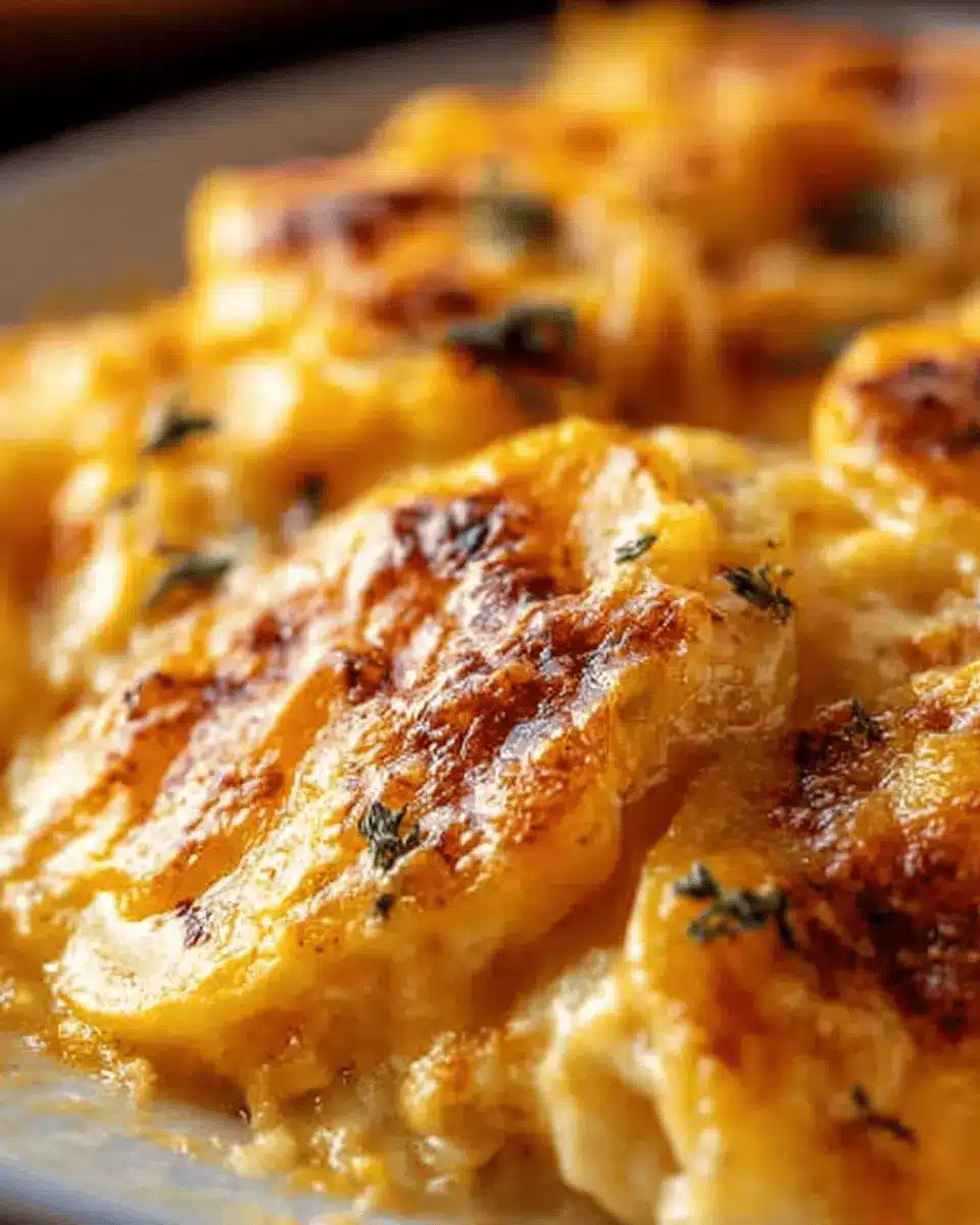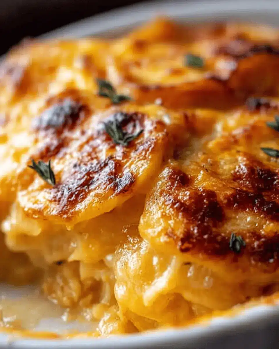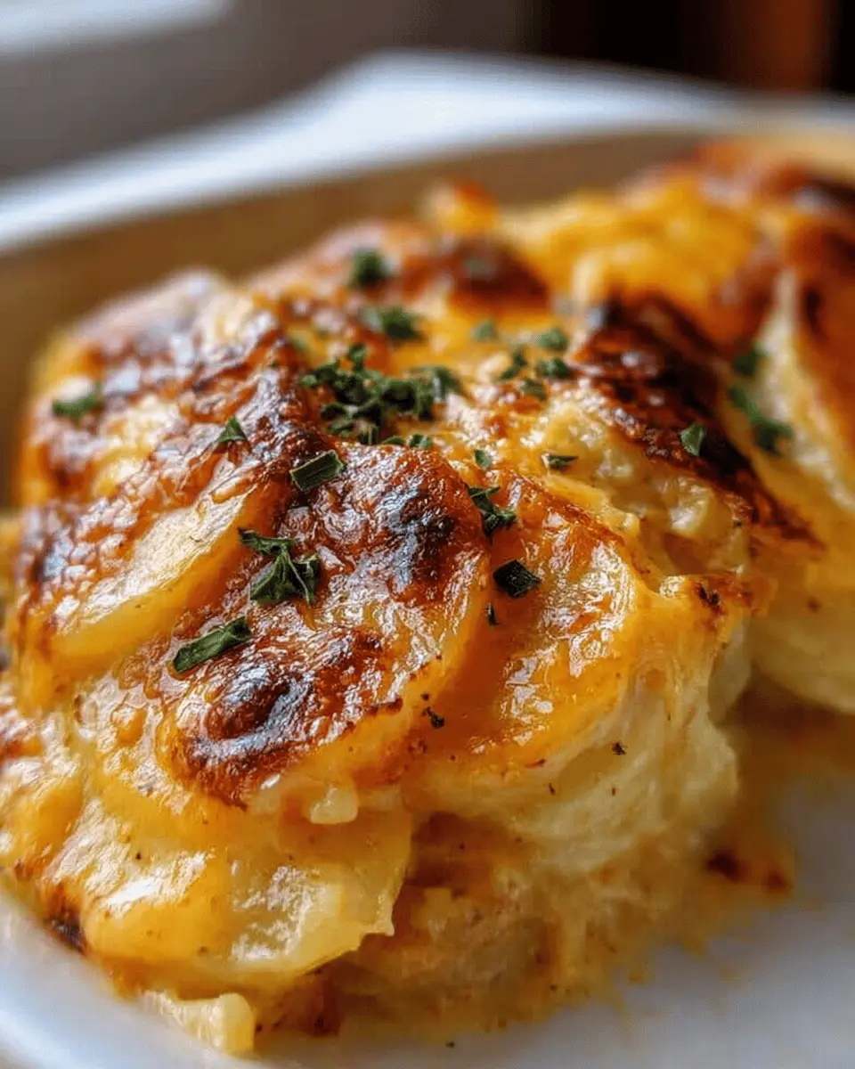 Add a savory twist to your dish by incorporating crispy turkey bacon. Simply sprinkle cooked and crumbled turkey bacon between layers of the potatoes and cheese sauce for a smoky flavor that pairs perfectly with the creamy texture. Want to kick it up a notch? Consider adding some chopped green onions or chives for a pop of freshness!