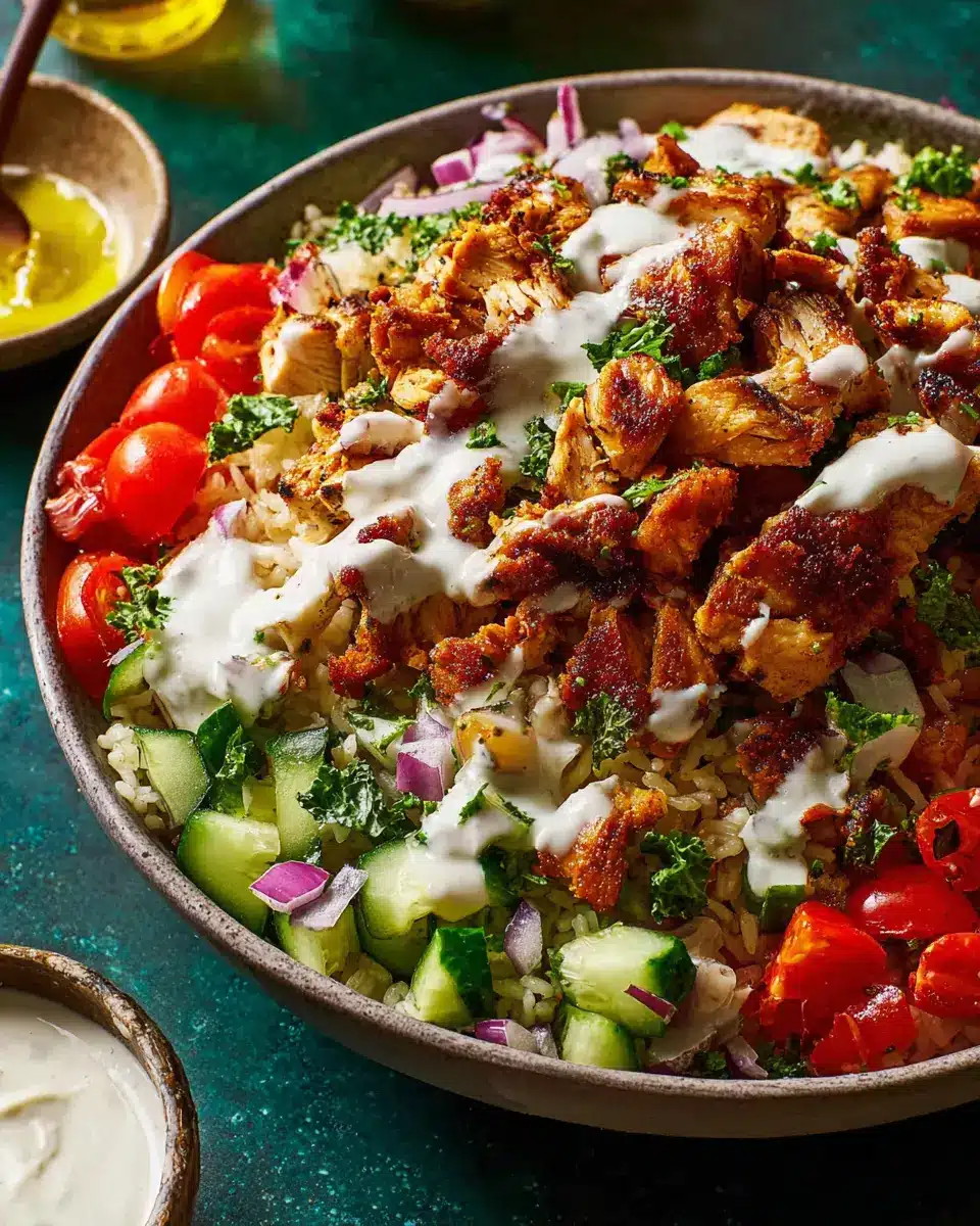 To elevate your Chicken Shawarma Crispy Rice Salad into a complete meal, consider pairing it with a side of warm pita bread or fluffy couscous. A refreshing yogurt-based dip, like tzatziki, can also enhance those vibrant flavors while offering a cool contrast. If you’re craving a bit of crunch, some roasted chickpeas sprinkled on top can provide that extra texture.