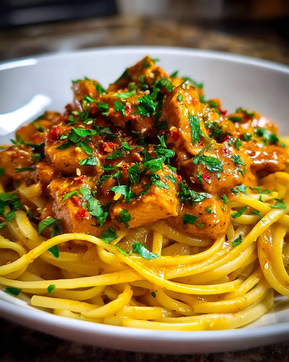 Your cowboy butter chicken linguine is almost ready! Serve it up hot, garnished with extra chopped parsley and a sprinkle of crushed red pepper flakes for those who like a kick. Pair it with a refreshing salad or crusty bread to soak up every drop of that delicious sauce. Each bite is sure to make your taste buds dance with joy!