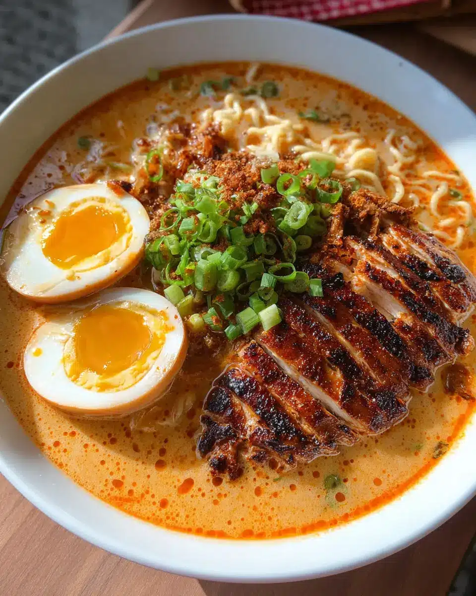 In just 30 minutes, you can enjoy a warm, satisfying bowl of creamy spicy chicken ramen. Perfect for busy nights or a cozy weekend meal!