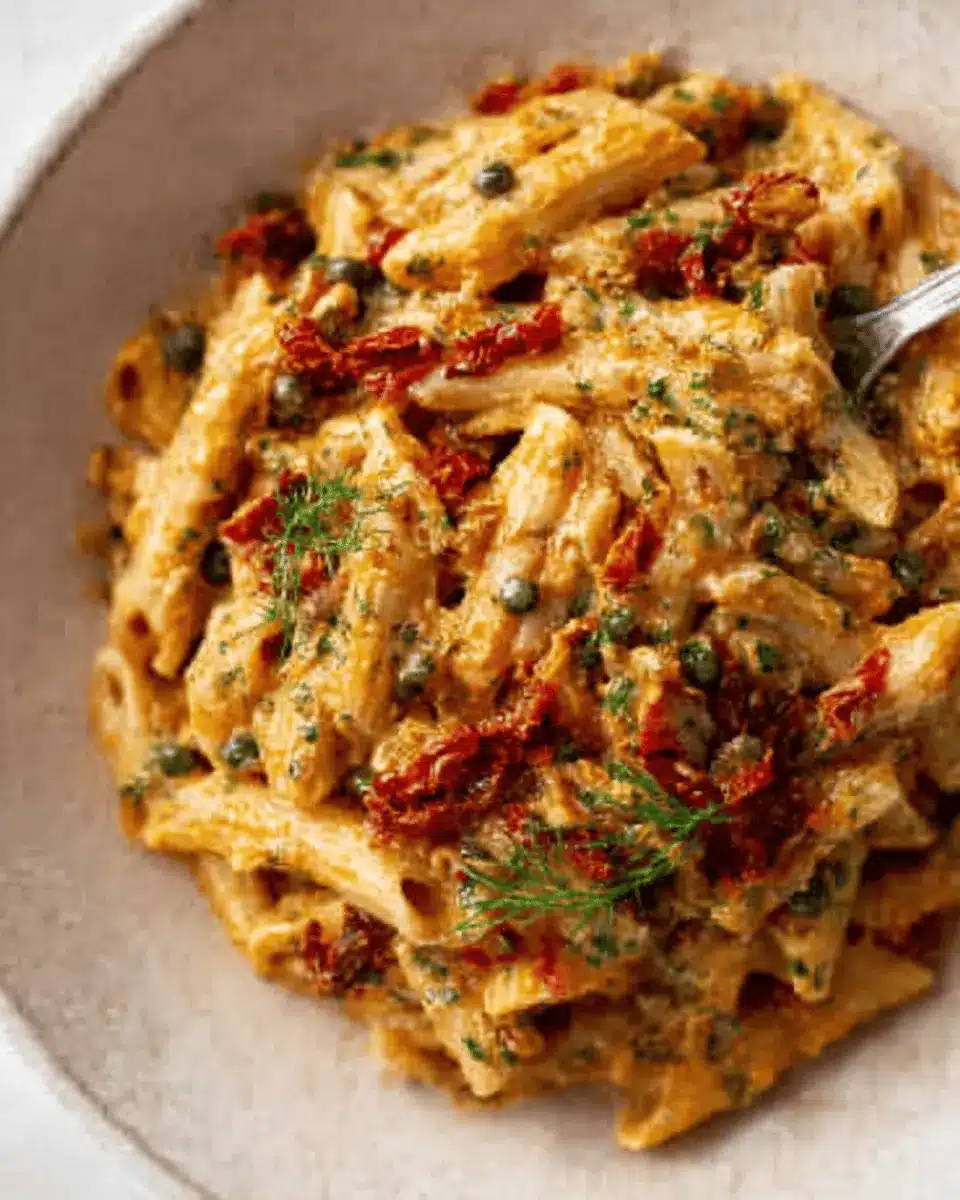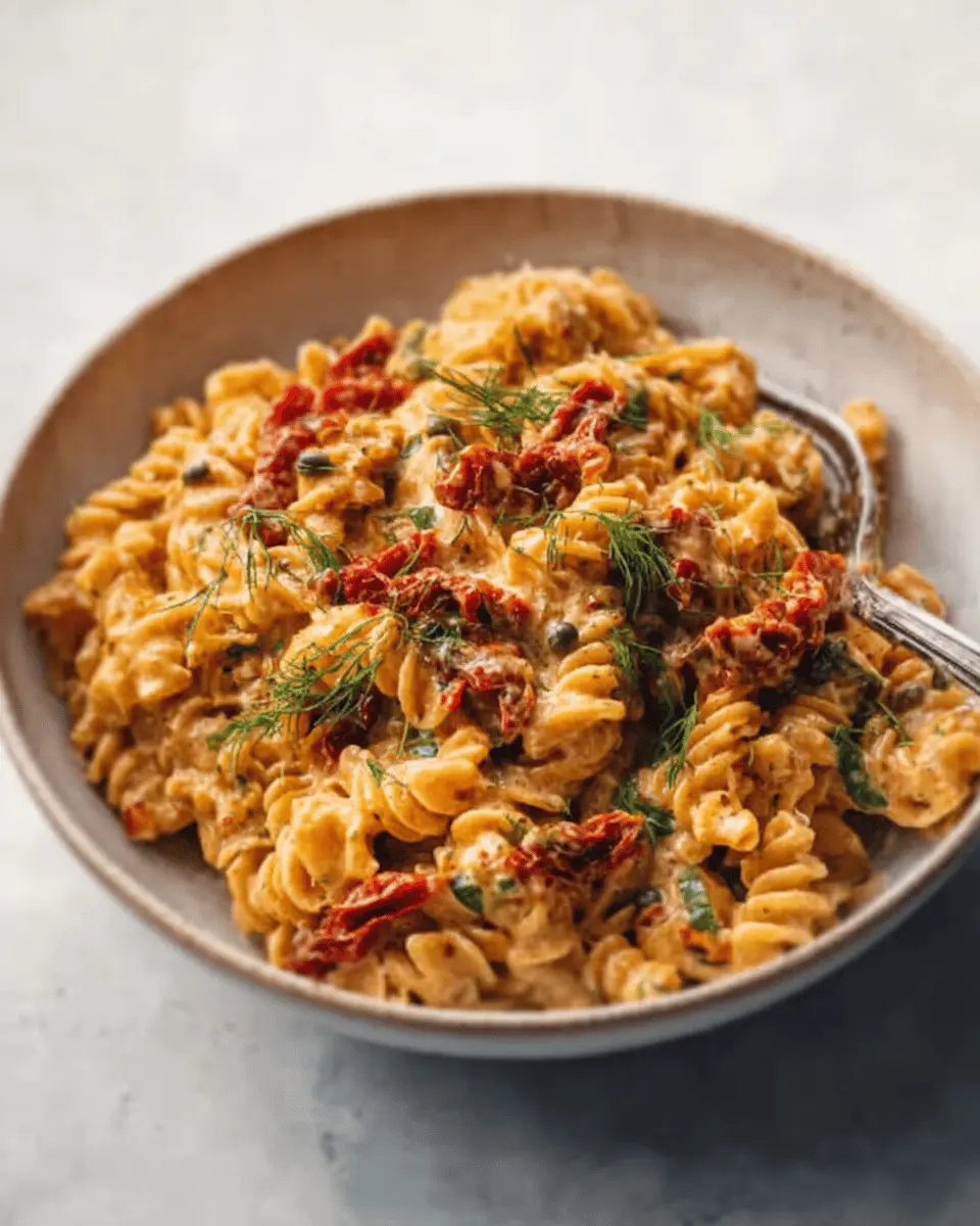Creamy Sun-Dried Tomato Pasta with Capers and Dill