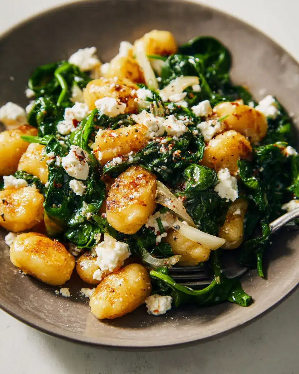 Crispy Gnocchi With Spinach and Feta