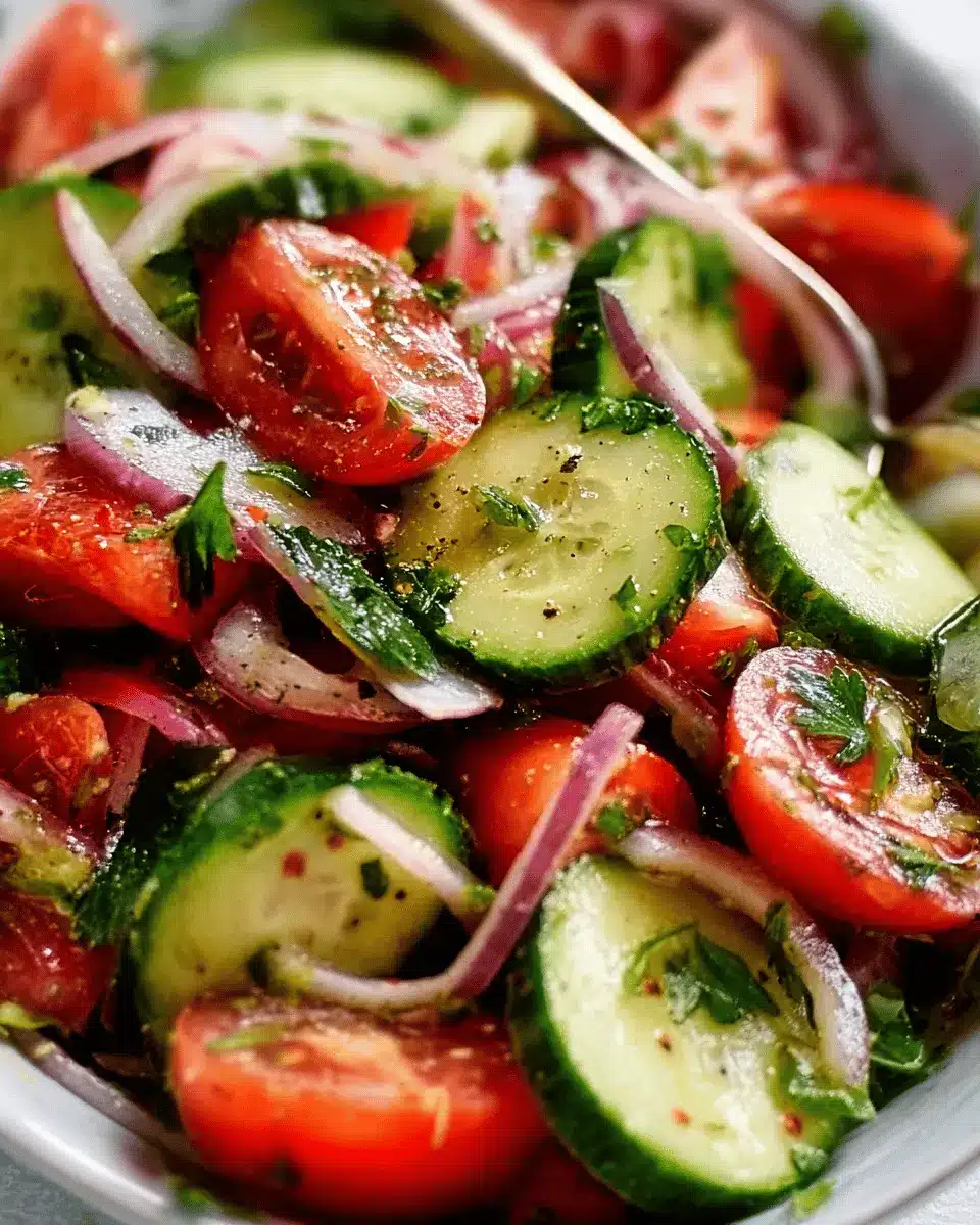 This salad is loaded with vitamins! The cucumber is a great source of hydration and contains Vitamin K, while the tomatoes offer a healthy dose of Vitamins A and C. Together, they provide essential minerals like potassium and magnesium, which promote overall health. For more information about vitamins, you might find this resource from the USDA helpful!