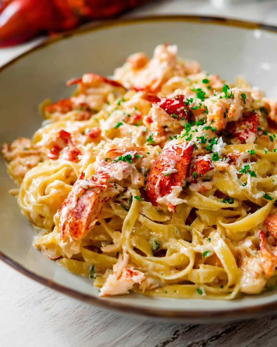Elevating the presentation of your Fancy Lobster Pasta is all about showcasing its luxurious colors. Serve it in shallow white bowls to highlight the vibrant reds and creams of the dish. Garnish with a sprinkle of freshly chopped parsley or microgreens for a splash of green. Don’t forget to drizzle a little extra virgin olive oil on top for a glossy touch. Using elegant utensils and napkins will also enhance the overall dining experience.
