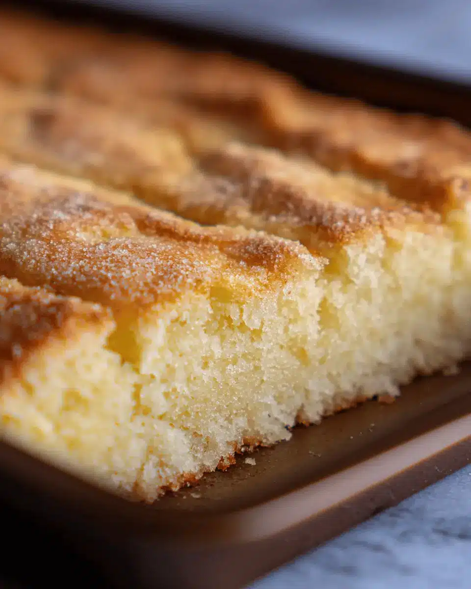 When fully cooled, you'll have a beautifully golden French Butter Cake ready for serving. Enjoy it plain, or pair it with fresh berries or a dollop of whipped cream for a delightful dessert!