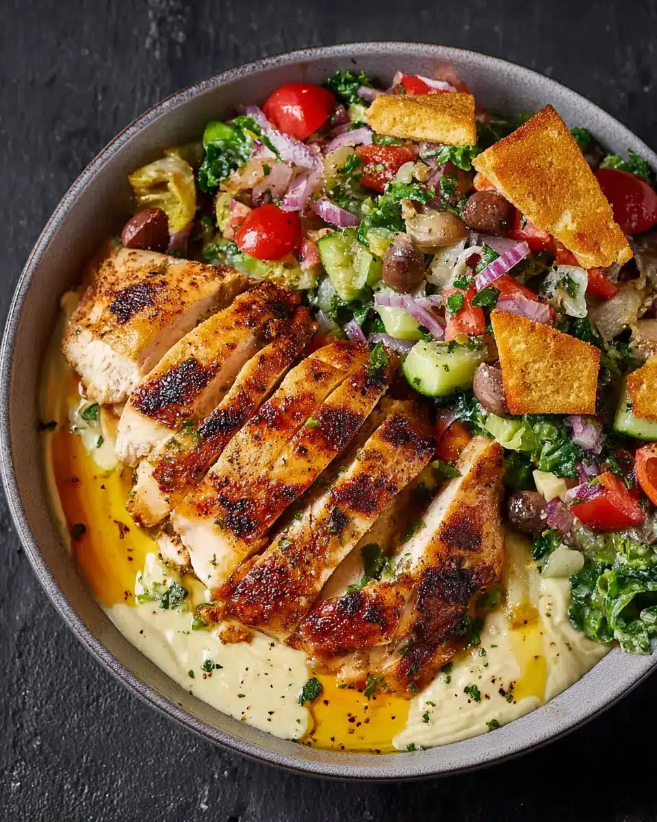 For those nights when you're not feeling poultry, this dish can easily become vegetarian! Swap the grilled chicken for marinated portobello mushrooms or grilled eggplant for that hearty texture. You can also enhance your Fattoush with ingredients like chickpeas or roasted cauliflower, offering a nutritious boost. To keep things creamy, use silken tofu blended with lemon and banana peppers, or skip the dip entirely for a drizzled tahini sauce instead. Either way, you'll find that this adaptable recipe is as versatile as it is delicious!