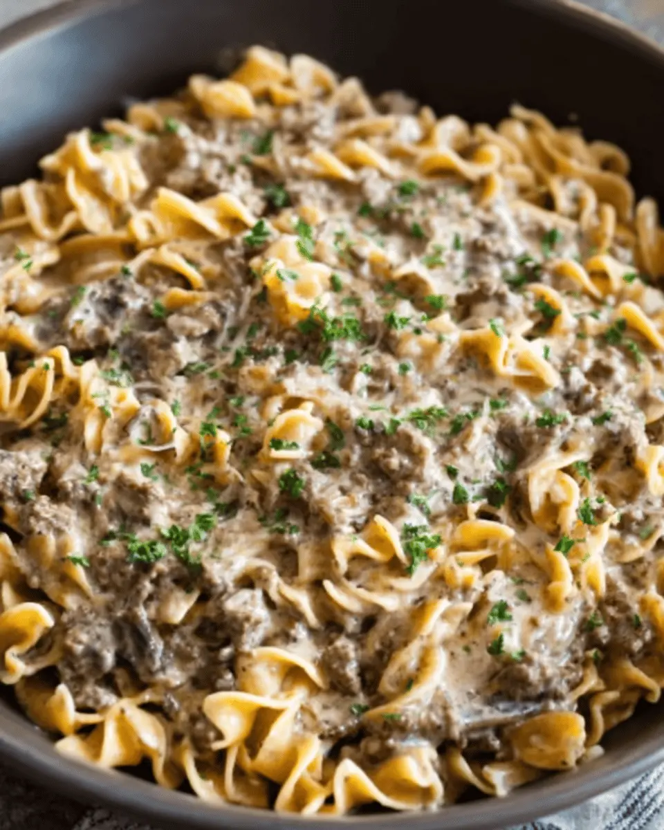 Now you're ready to enjoy a comforting bowl of ground beef stroganoff that’s perfect for a busy weeknight dinner or a special occasion. Happy cooking!