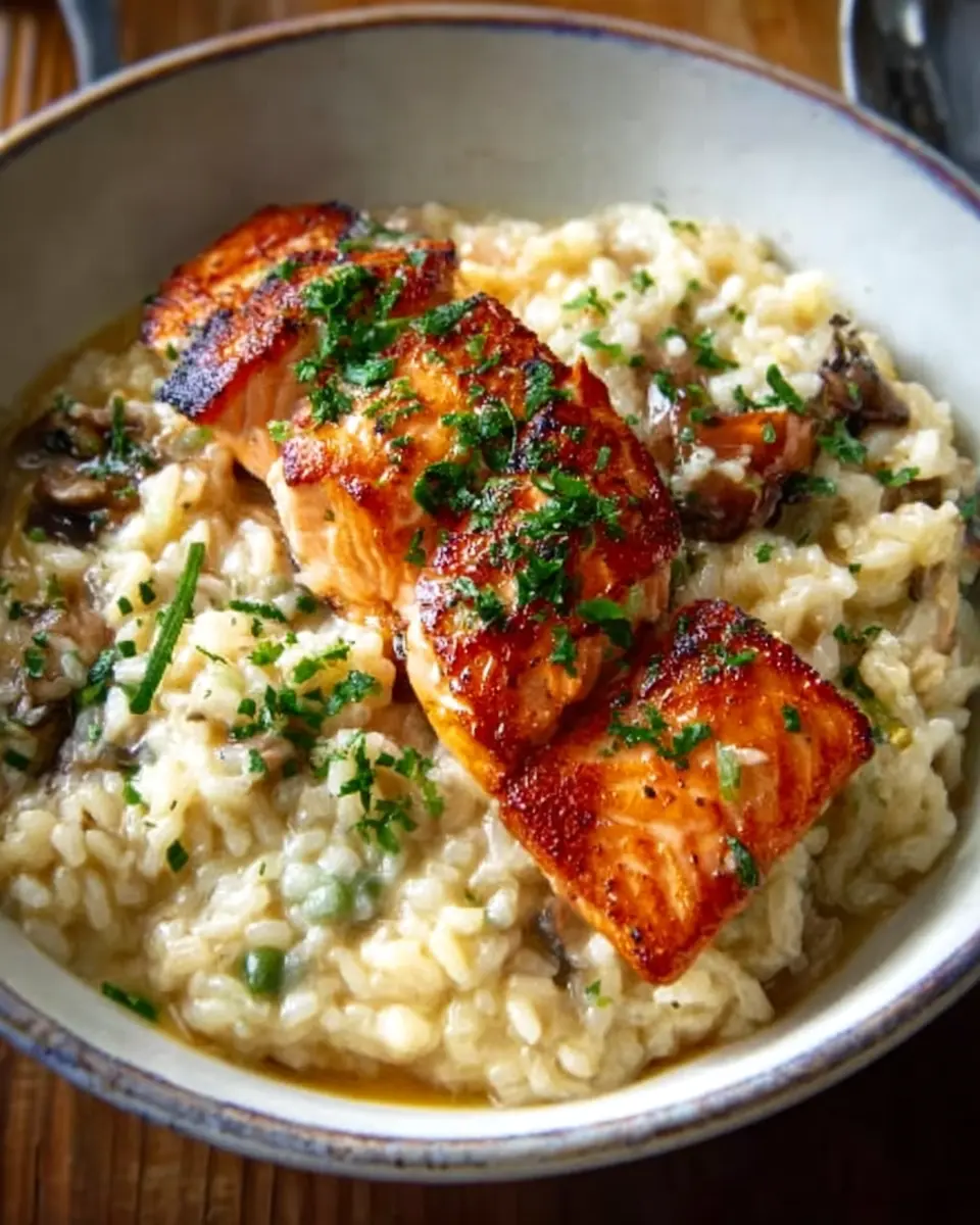Experimenting with various mushrooms can take your risotto to the next level. While shiitake mushrooms are a classic choice, consider adding enoki for a delicate crunch or cremini for a deeper, earthier taste. Mixing different types will create a complex flavor profile that beautifully complements the seared salmon, making this dish a true standout. For more on mushroom varieties, check out this guide from The Mushroom Council.