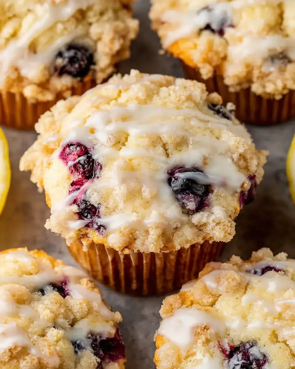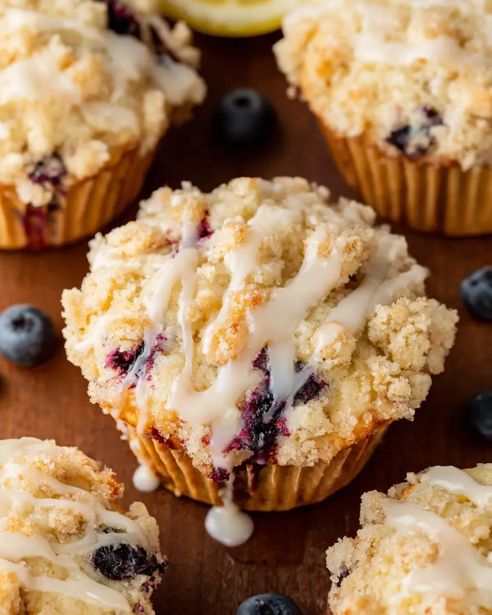 Lemon Blueberry Streusel Muffins with Lemon Glaze