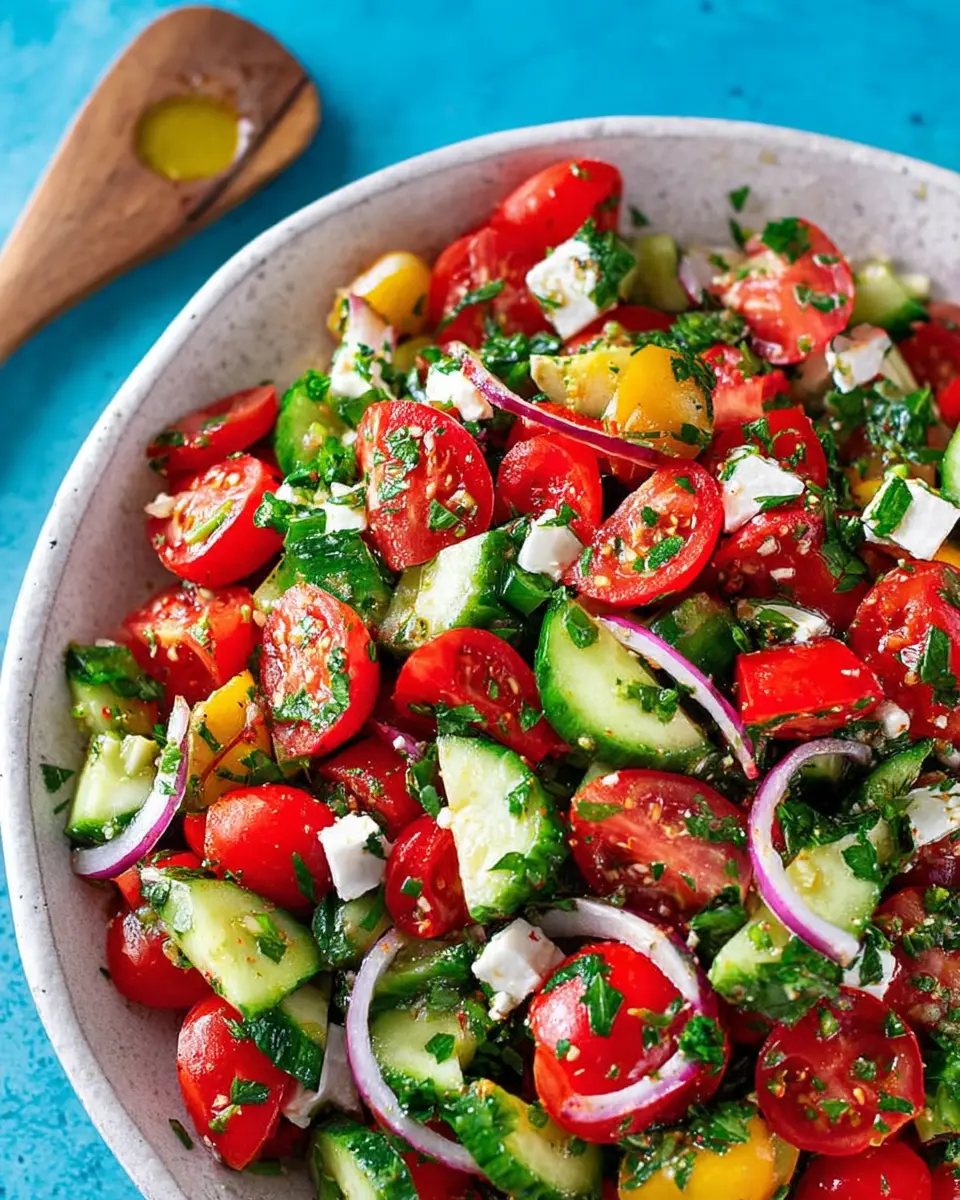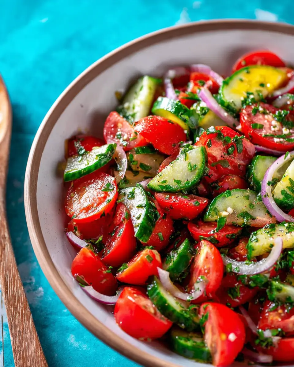 Creating a refreshing Mediterranean Cucumber Tomato Salad is not only simple but also a delightful way to bring the fresh flavors of the Mediterranean to your table. With just a handful of ingredients, this salad is perfect for any occasion. Let’s dive into the steps to prepare this vibrant dish!
