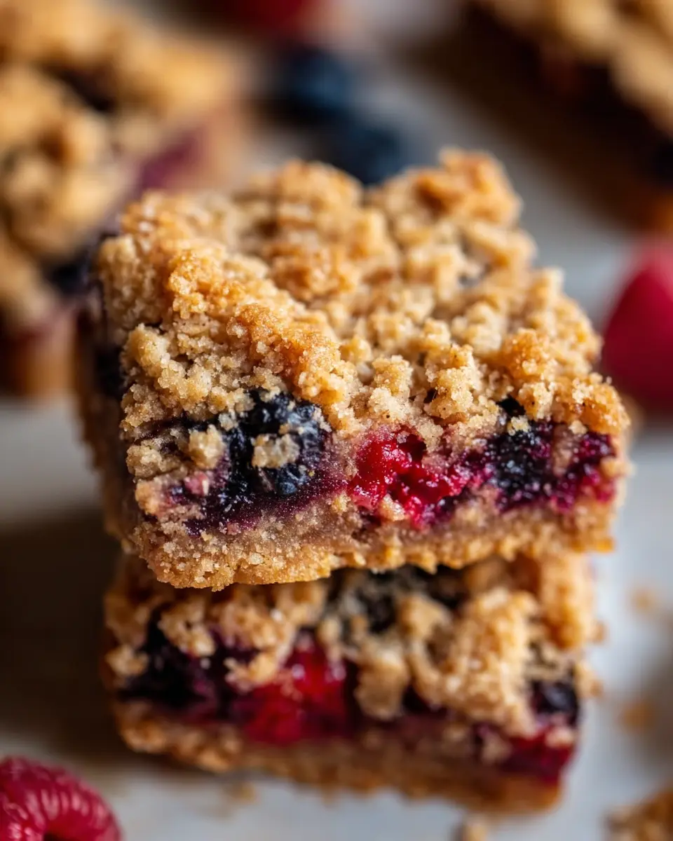 Absolutely! These mixed berry crumble bars freeze beautifully. After they have cooled completely, wrap them tightly in plastic wrap, then in aluminum foil, and they can last in the freezer for up to three months. When you're ready to enjoy, simply thaw them in the fridge overnight or at room temperature for a few hours.