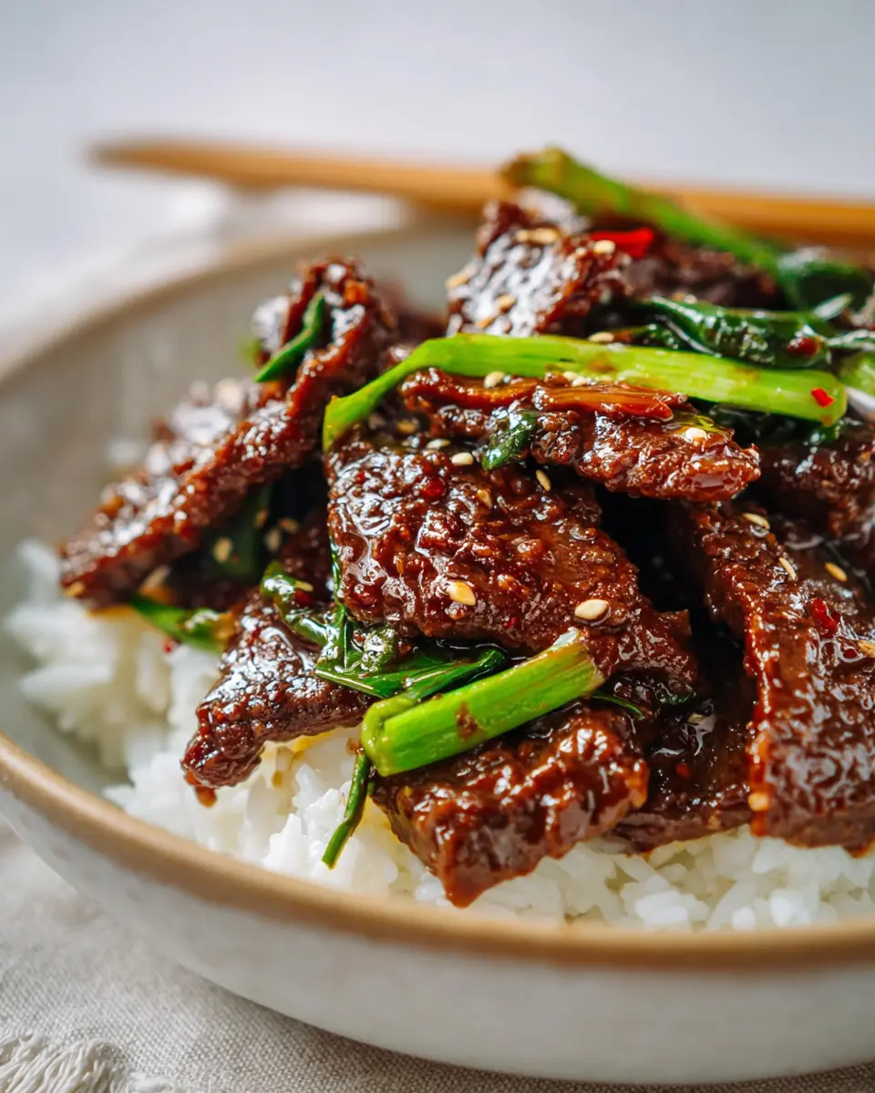 Elevate your Mongolian Beef dish with simple garnishes like: