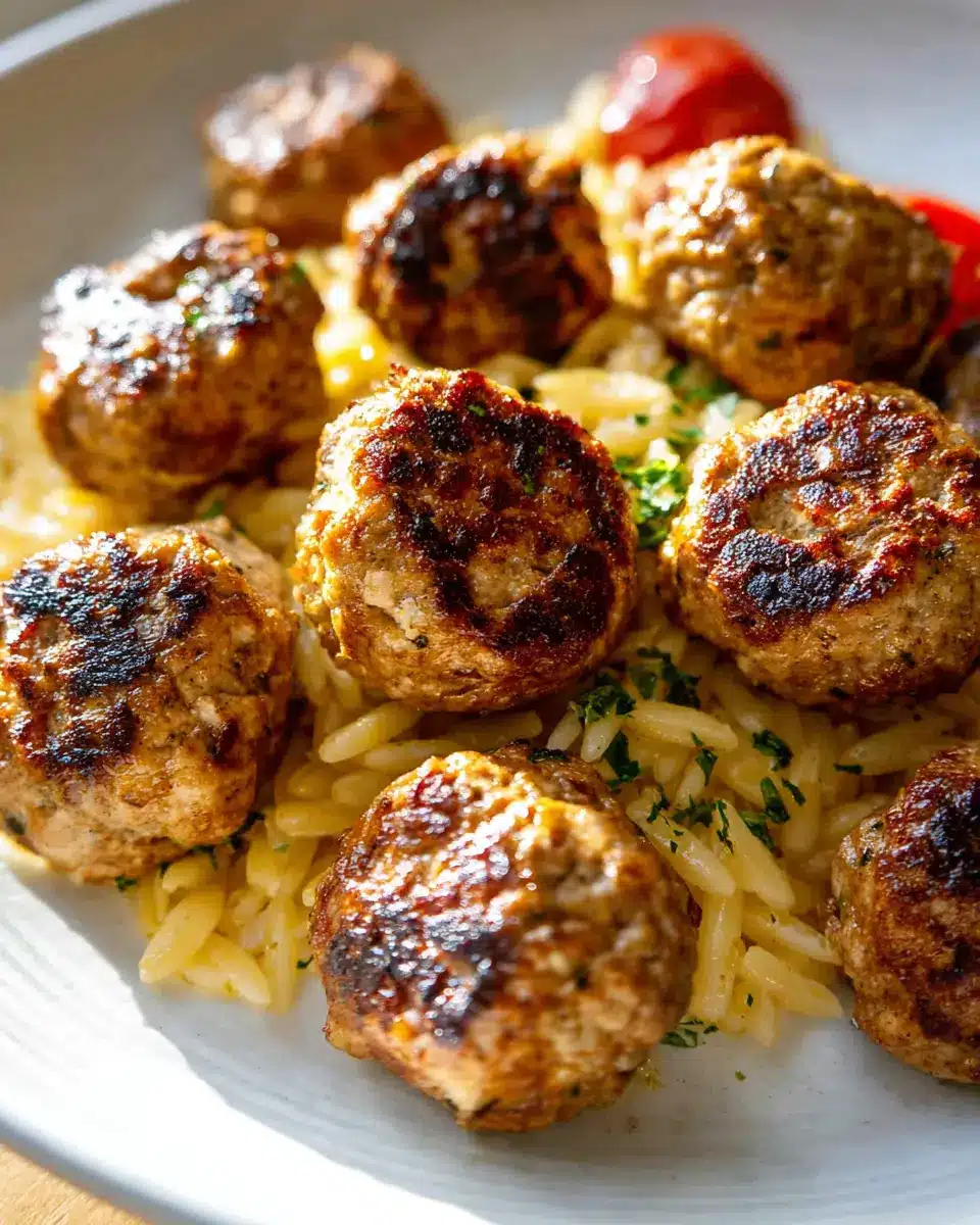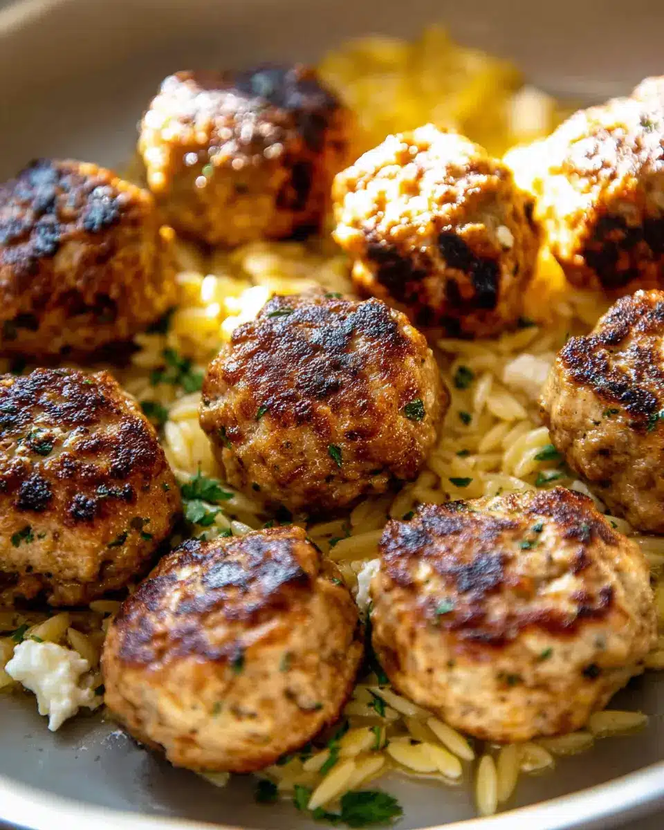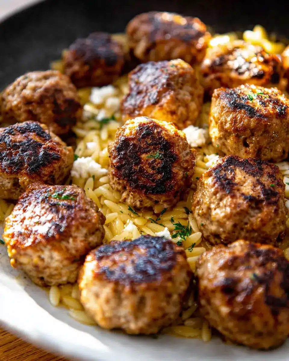 One Skillet Greek Meatballs and Lemon Butter Orzo.