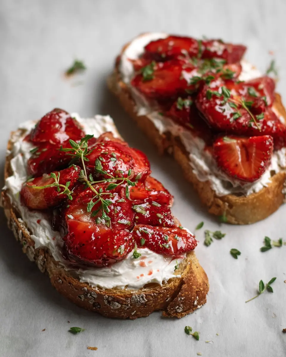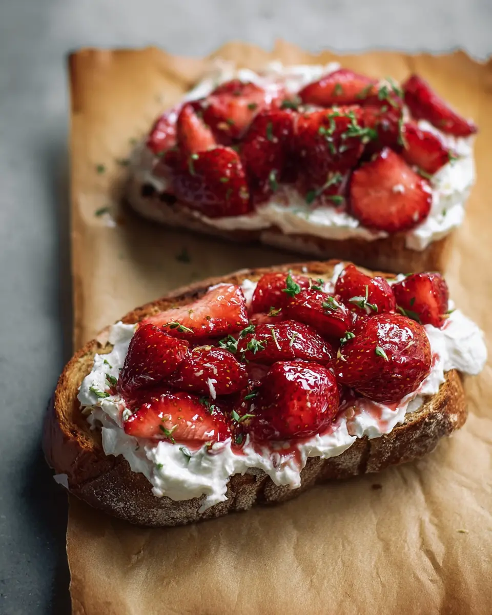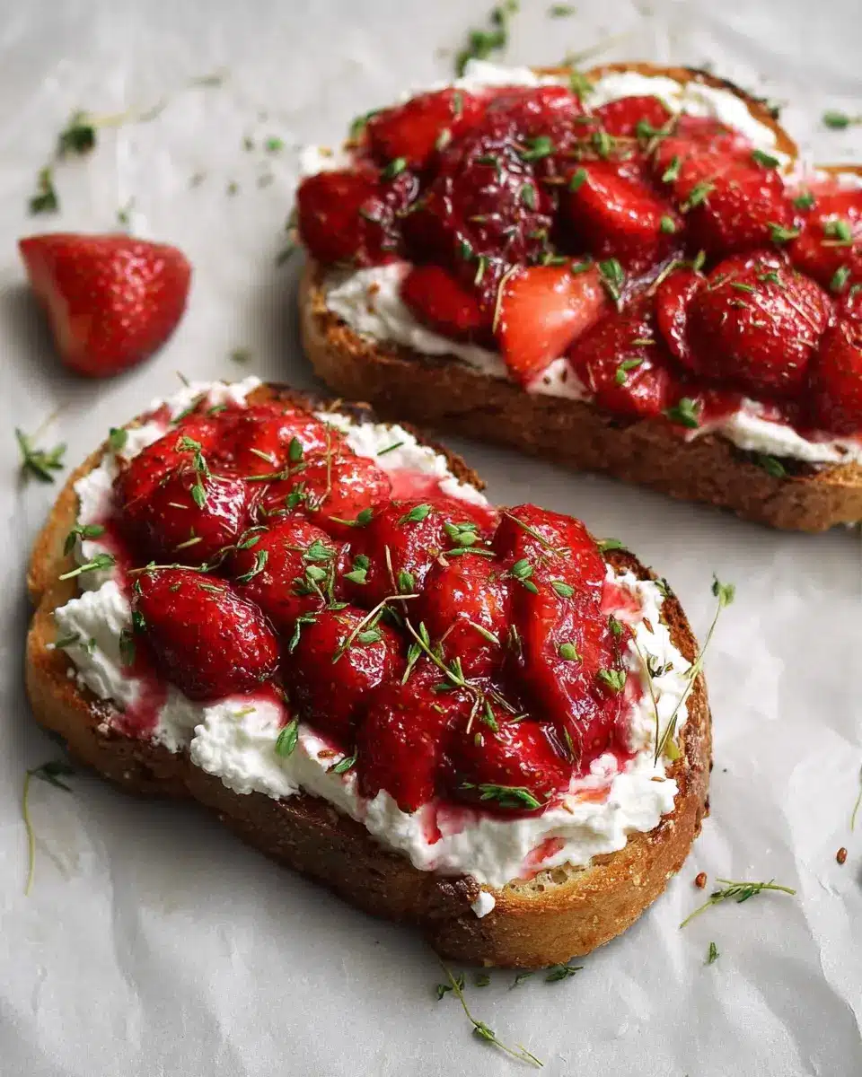 This mouthwatering toast isn't just tasty; it’s also a source of essential vitamins. Strawberries offer a healthy dose of vitamin C, while ricotta adds calcium for strong bones. With wholesome ingredients like thyme, you’re getting a boost of antioxidants as well, making every bite both delicious and nourishing.