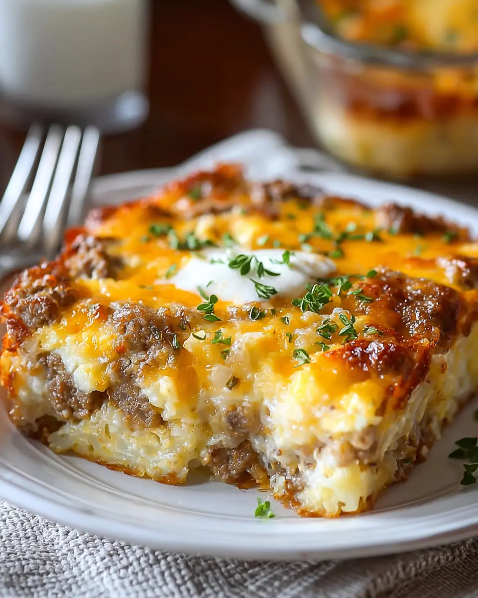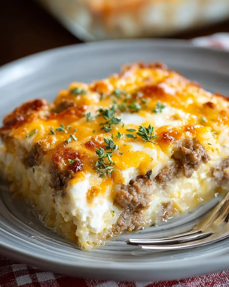 Sausage, Egg, and Cream Cheese Hashbrown Casserole Awaits!