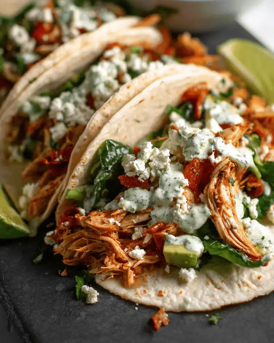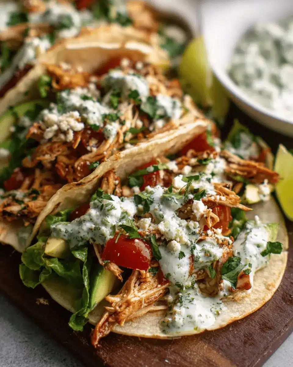 Shredded Chicken Tacos with Creamy Chimichurri Sauce