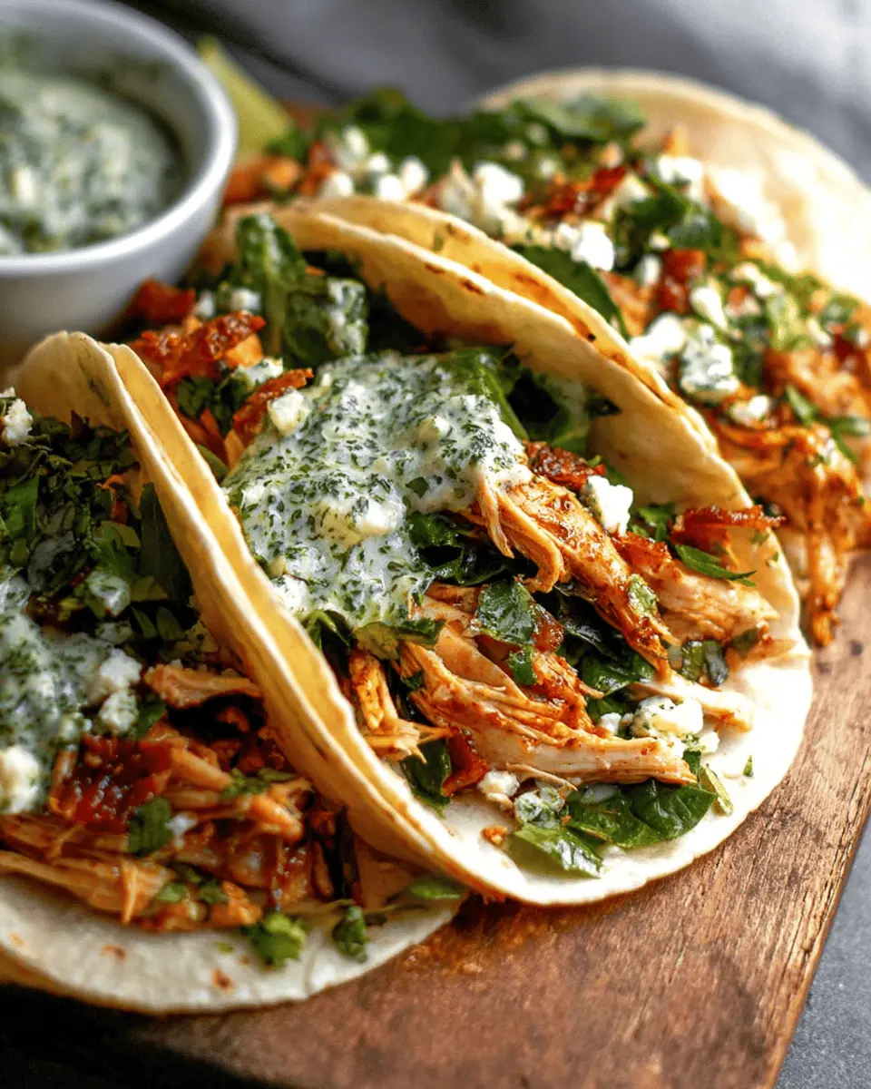 In summary, shredded chicken tacos topped with creamy chimichurri sauce are a quick and flavorful meal that brings joy to any table. Packed with nutrients and zest, they're perfect for weeknight dinners or casual gatherings. Enjoy experimenting with toppings—your taste buds will surely thank you!