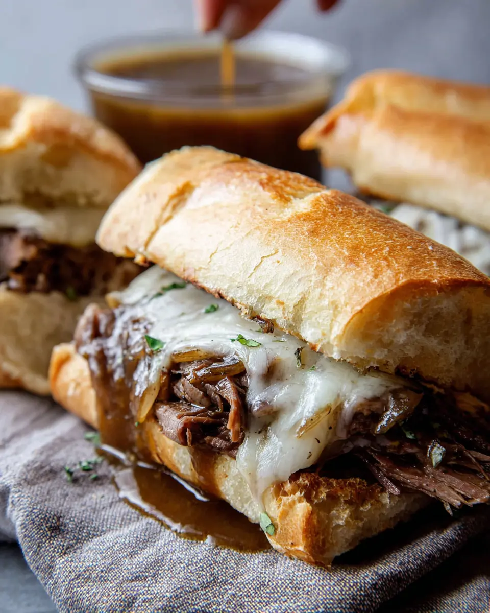 For a hearty vegetarian take, swap in mushrooms instead of beef. Use a mix of portobello and cremini for robust flavor. Add vegetable broth and seasonings such as thyme and garlic to recreate that savory essence of a traditional French dip. Serve it on toasted rolls with melted cheese for a comforting meal that everyone can enjoy!