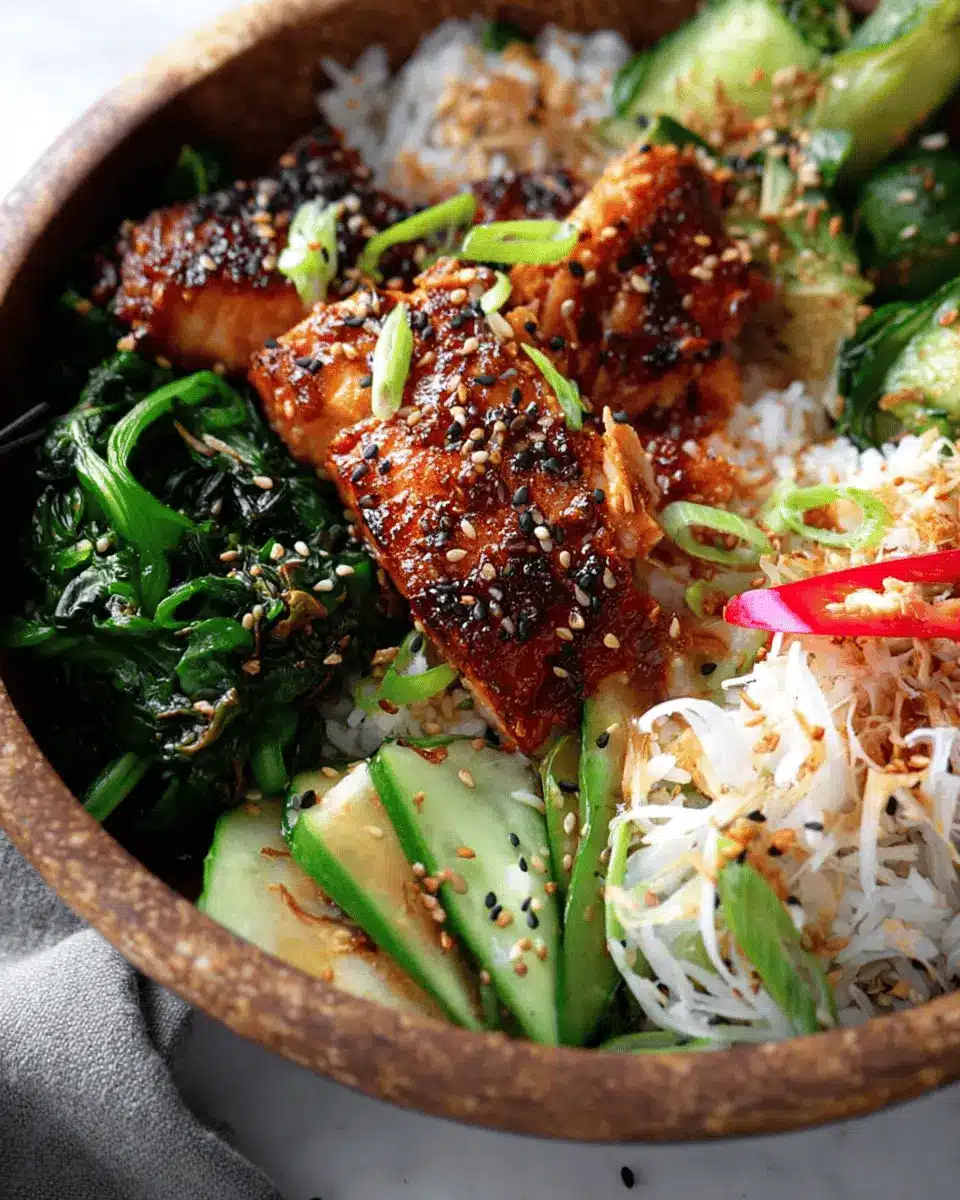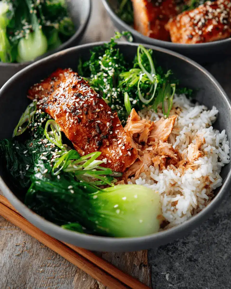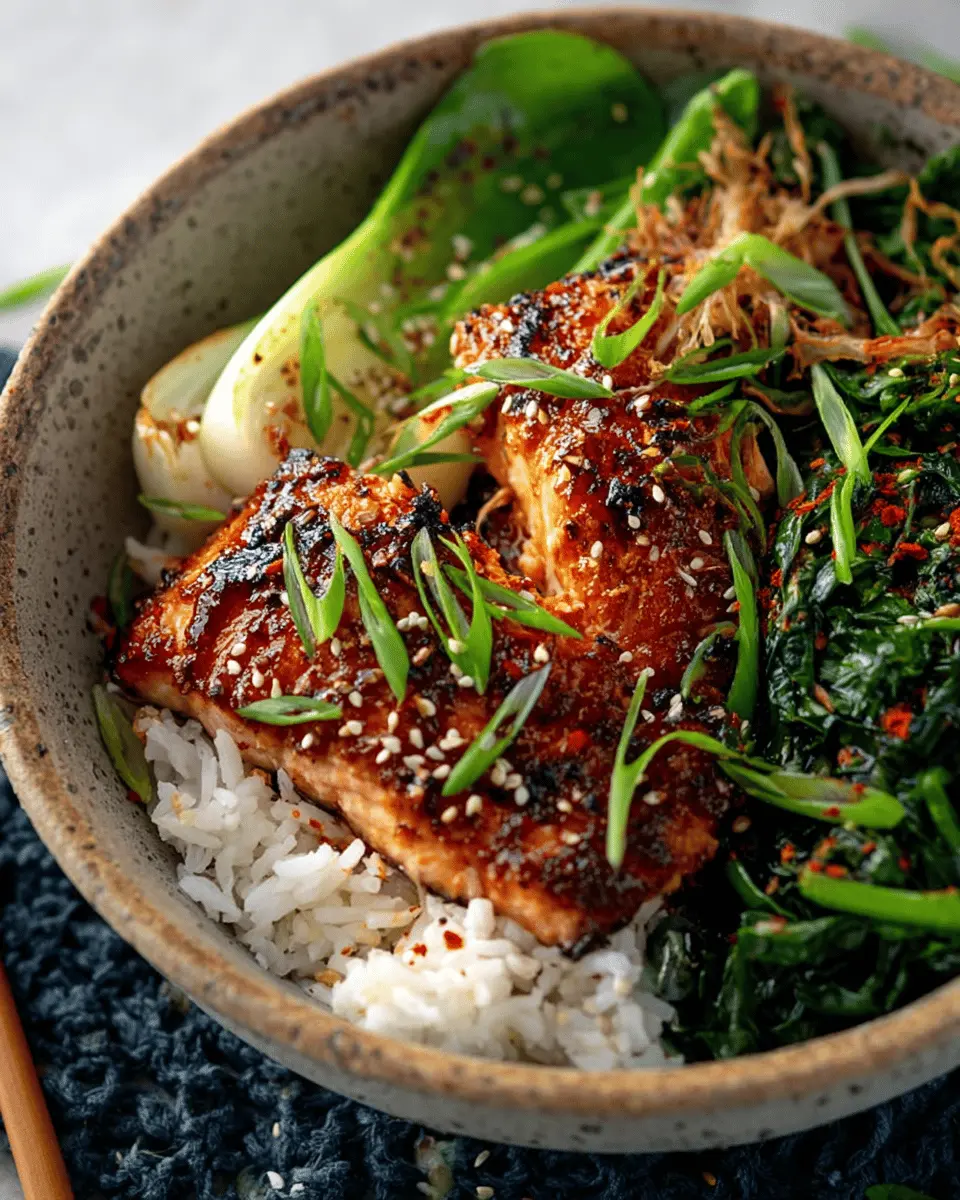 Teriyaki Salmon Bowls with Ginger Sesame Greens & Coconut Rice