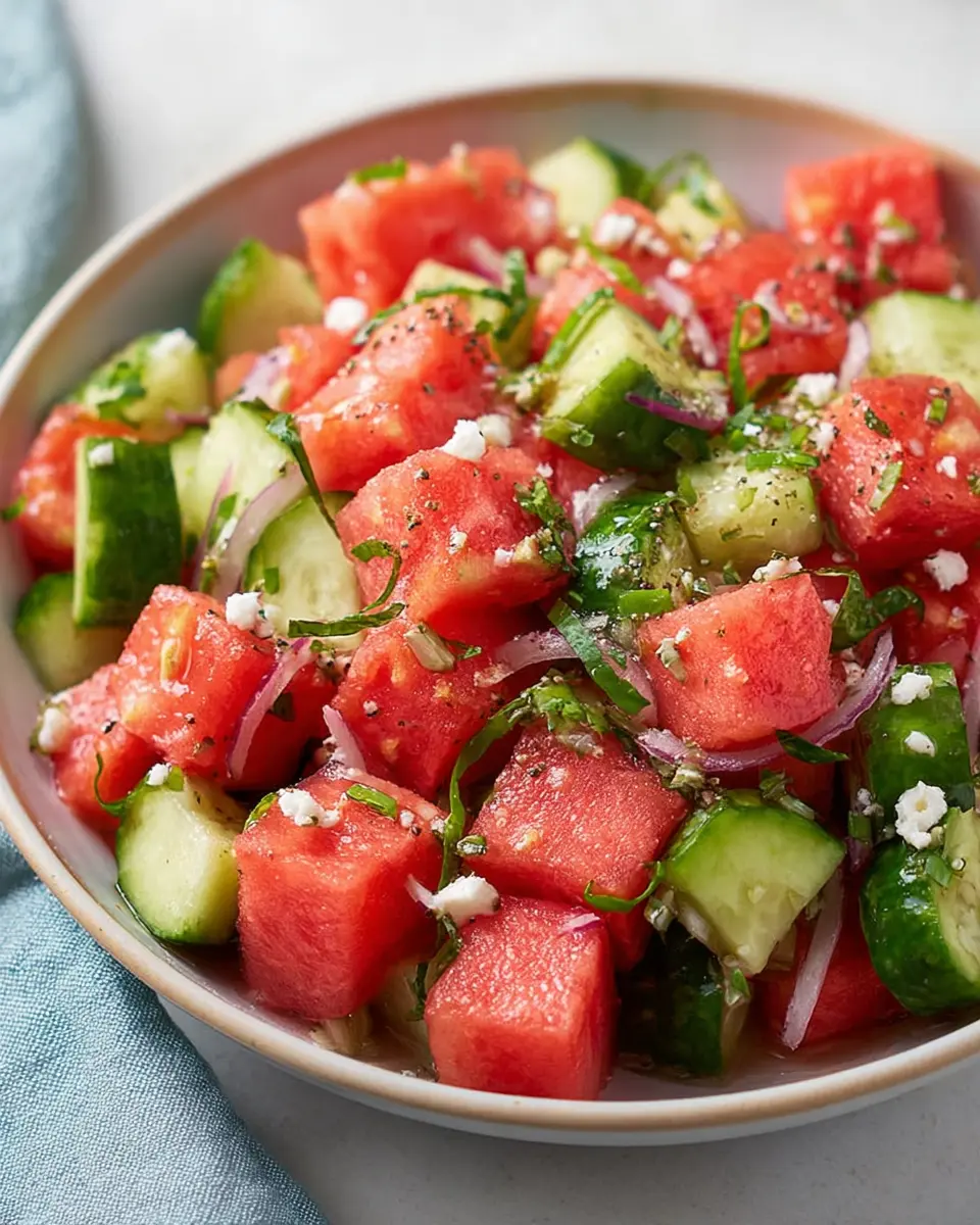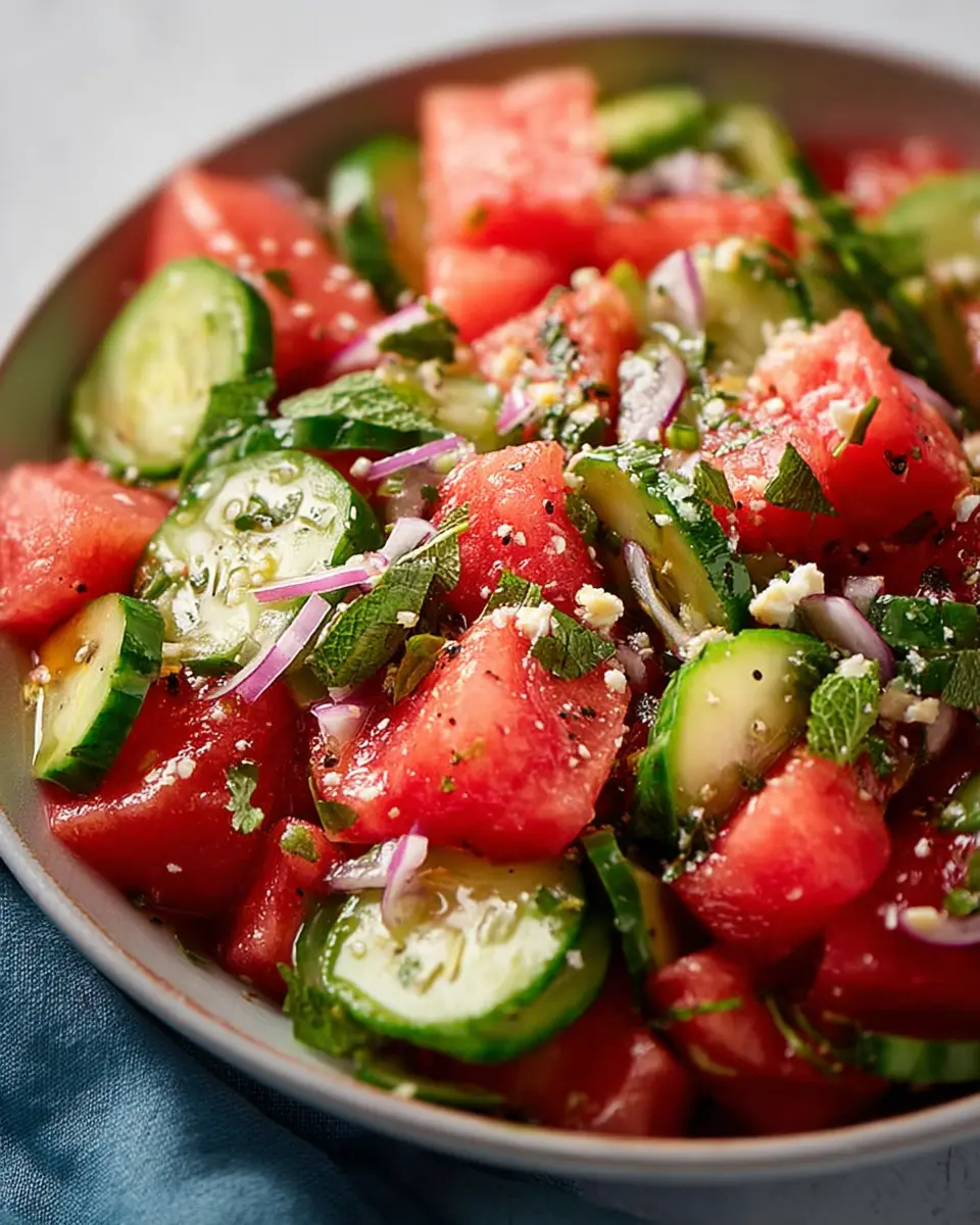 In summary, this vibrant watermelon cucumber salad is not just a delicious treat but also incredibly versatile. Perfect for summer picnics or as a refreshing side dish, it effortlessly complements any meal. With its bright flavors and crunchy texture, there's no doubt this salad will become a repeat favorite!