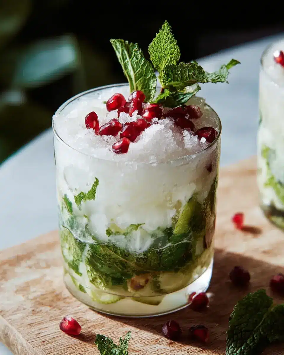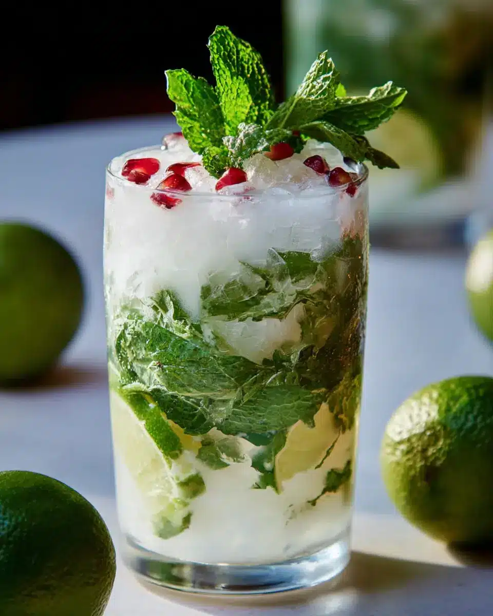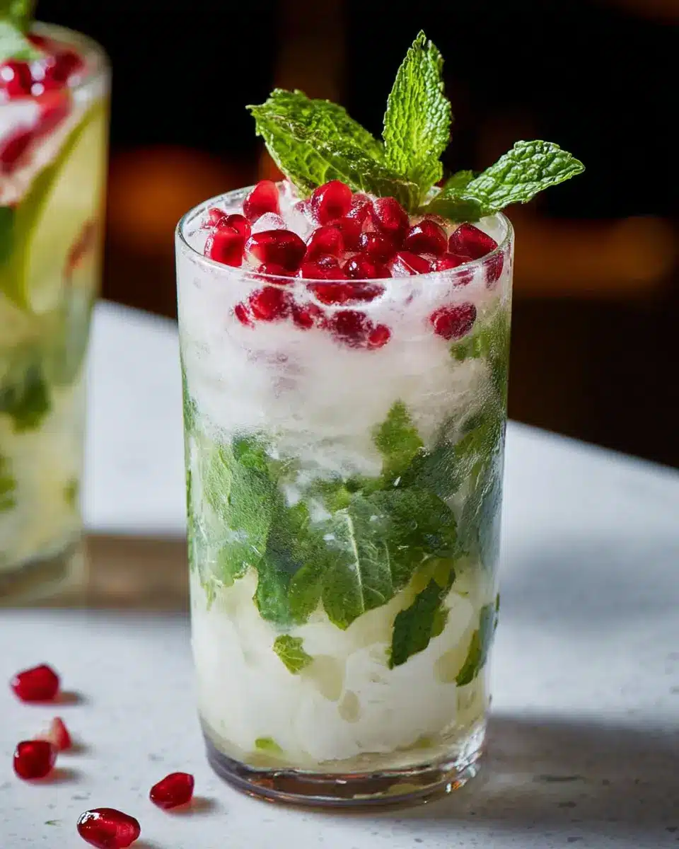 The White Christmas Mojito stands out with its unique blend of coconut cream and fresh mint. The use of coconut creates a tropical vibe, making it a wonderful contrast to traditional holiday flavors. Plus, pomegranate seeds add a splash of color and a burst of flavor that will impress your guests.